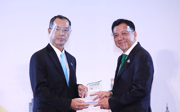 PTT received a plaque and a certificate at the 2020 “Roi Duang Jai: Ruam Jai Lod Loke Ron” (The Annual Greenhouse Gas Reduction Award Ceremony)
