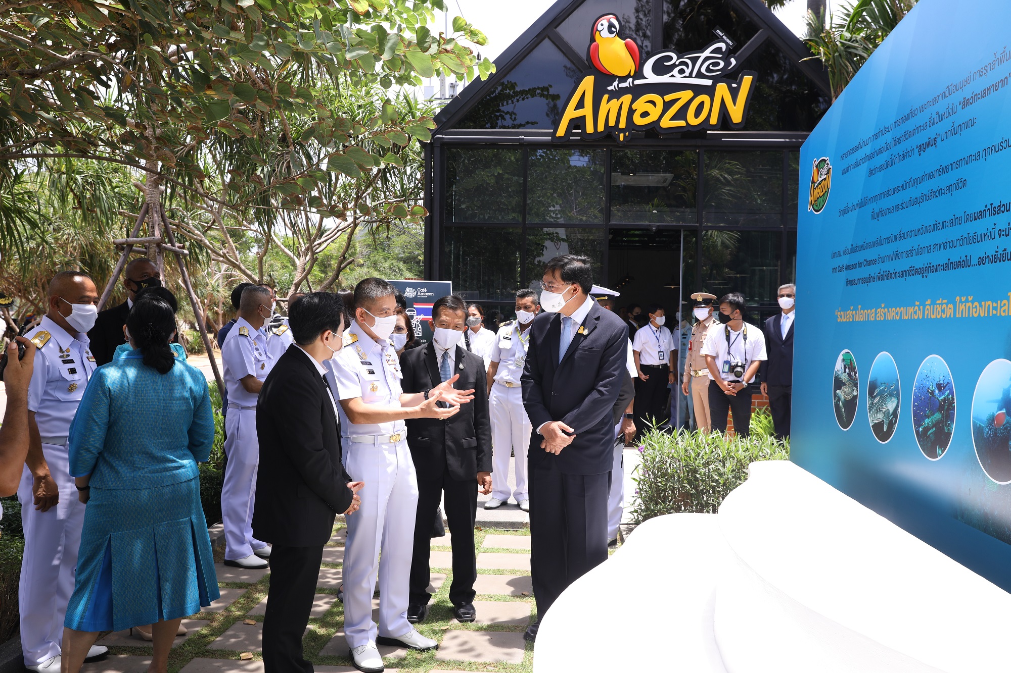 PTT Group led by PTT Public Company Limited (PTT), PTT Exploration and Production Co., Ltd., PTT Oil and Retail Public Company Limited (OR) and Sarn Palung Social Enterprise Co., Ltd. (SPSE) together with Royal Thai Marine Corps, The Royal Thai Navy led by Admiral Luechai Ruddit, Commander of the Royal Thai Navy opened Café Amazon for Chance at Marine Corps Branch, Toei Ngam Beach Sattahip District, Chonburi province. This is the first branch served by veterans injured in battle and their families who work as barista. The cafe offers opportunities as it creates a stable job and income to improve quality of life and promotes equality for the underprivileged in the society. The program is carried out by SPSE established by PTT and 6 flagship companies to undertake social enterprises of PTT Group.