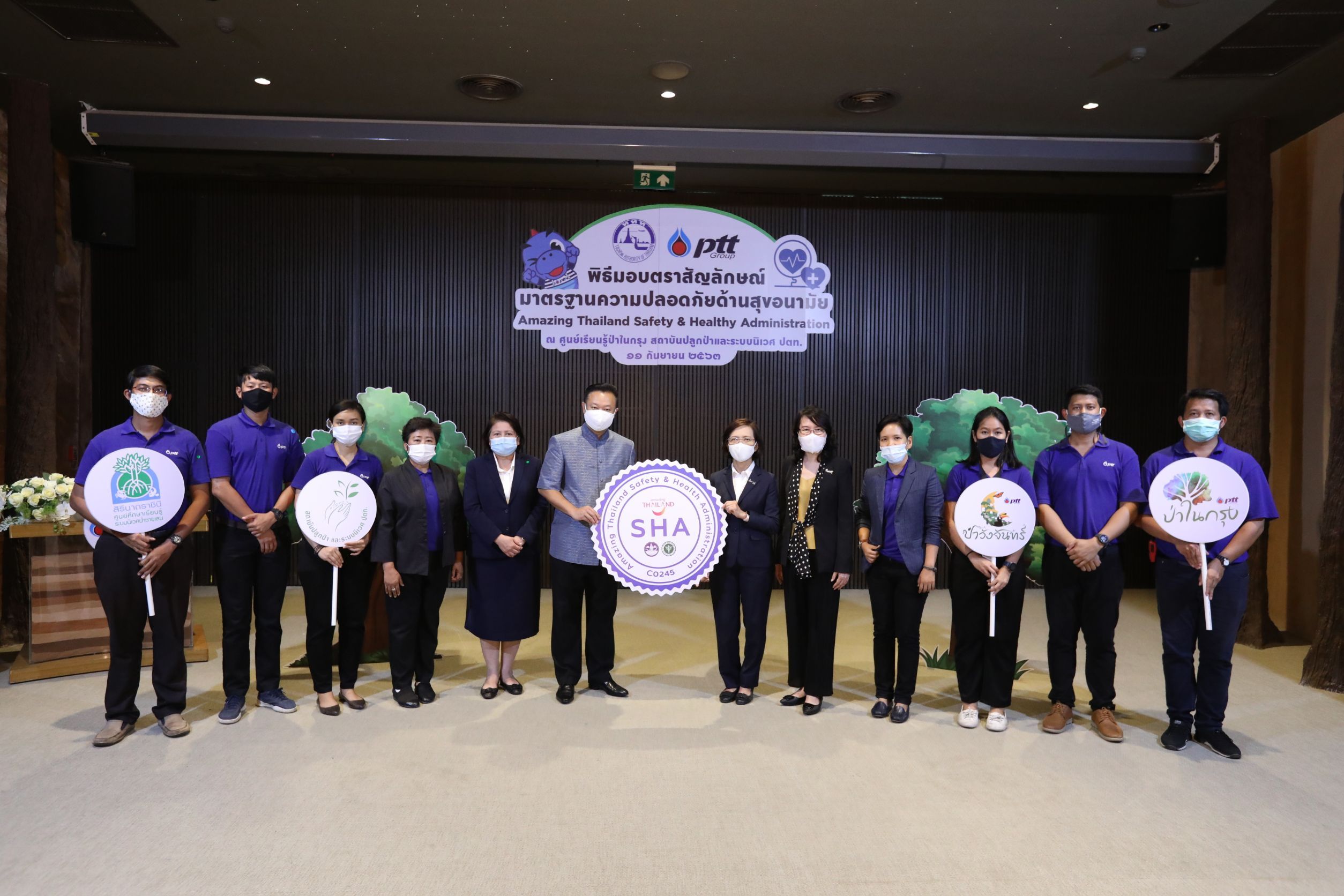Mr. Yuthasak Supasorn, Governor of the Tourism Authority of Thailand (TAT), presented the SHA Certificates or Amazing Thailand Safety & Healthy Administration to Ms. Duangporn Thiengwattanatham, Senior Executive Vice President, Corporate Governance and Regulatory Affairs, PTT as PTT's three natural learning centers have been certified for hygiene and safety standard-SHA from TAT. Those centers are Metro Forest Learning Center, Wang Chan Forest Learning Center and the Queen Sirinath Mangrove Ecosystem Learning Center. The centers are established by PTT Forest and Ecosystem Institute to be a natural learning center for youth and interested parties in both Bangkok and other provinces. In a new normal way, now visitors can visit the three learning centers with confidence. Strict sanitary, safety measures and screening are practiced to ensure cleanliness and safety in all service areas. Due to interesting features and beauty of the centers, all learning centers have become major tourist attraction in the provinces. As the centers welcome a number of visitors continuously; the number of Thai and foreign tourists exceeded one million.