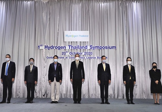 Mr. Wittawat Svasti-xuto, Chief Technology and Engineering Officer of PTT Public Company Limited (PTT) and Chairperson of Hydrogen Thailand Group (4-L), along with Dr. Twarath Sutabutr, Inspector General, Office of the Permanent Secretary, Ministry of Energy (3-L), Mr. Ninnart Chaithirapinyo, Chairman of the Board of Toyota Motor Thailand Co., Ltd. (3-R), Mr. Yukio Yoshida, Vice President, Toyota Daihatsu Engineering and Company Manufacturing Co., Ltd. (2-L), Mr. Piyabut Charuphen, Managing Director, Bangkok Industrial Gas Co., Ltd (BIG) (2-R), Mr. Reiji Fujita, President of Mitsui & Company (Thailand) Ltd. (1-L) and Dr. Sumittra Charojrochkul, Director of Energy Innovation Research Group of National Energy Technology Center (ENTEC), National Science and Technology Development Agency (NSTDA) (1-R) attended Hydrogen Thailand Symposium. It is organized to promote the cooperation among members from both public and private sectors to share information and support concerned government policies. Recognizing the importance of hydrogen and fuel cell technology, PTT has thus formed Hydrogen Thailand Group to vigorously promote it as a new alternative energy of the future for a low-carbon circular economy in Thailand. It will help reduce pollution emissions or greenhouse gases. This event marks the beginning of PTT and allies in concretizing the use of hydrogen to improve the economy of the country and sustainable energy development.