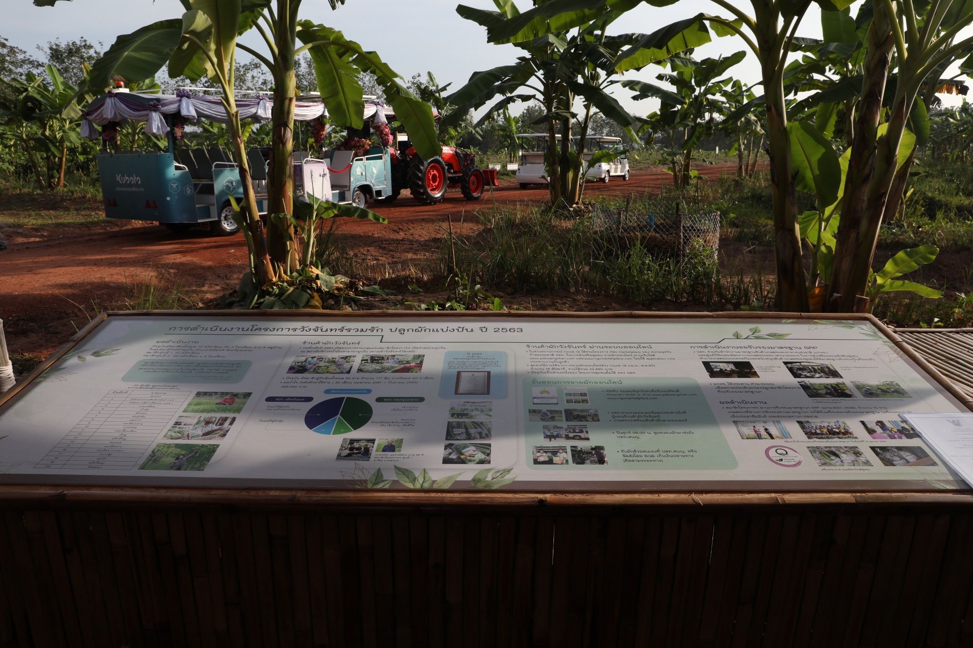 To date, with regards to construction work - building and utilities construction, architectural work, system testing and excavation of the second pond on an area of 9.63 rai - is expected to be completed by January. In addition, 20.45 rai has been developed as an Eco- Forest according to Miyawaki theory. Faculty of Forestry, Kasetsart University has provided advice on the selection of wood species and academic planting. On this area, more than 20,000 forest seedlings of 79 types of trees for 3 levels of forest have already been planted. As for the development of fruit plots on a total area of 40 rai, the planting of Mali-Ong cultivated bananas (Kluay Nam Wah) and Hom Thong bananas as nurse plants covering an area of 35 rai is completed. These include royally granted Golden Nam Dok Mai mango variety with jackfruit plots; mangosteen plots; mixed fruit plots (mango and longkong); rambutan plots; commercial durian varieties plots; Robusta Coffee plots between the rows of rubber trees; and plots of Robusta coffee and Arabica coffee between the cashew tree rows. Meanwhile, the planting of conserved durian plots, the varieties that can be planted together with fruit trees and herbs is underway.