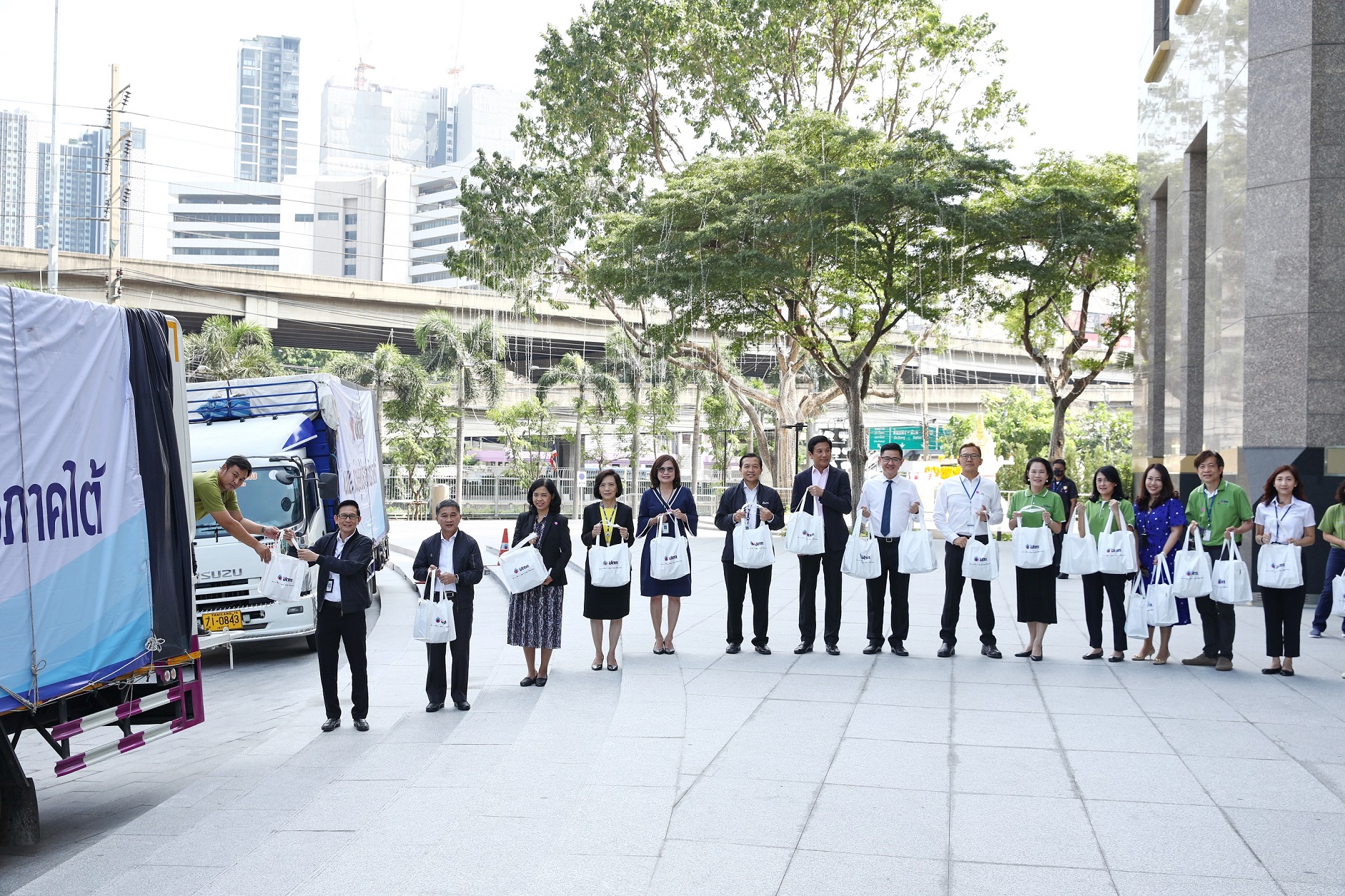 "Throughout the years, PTT Group has been continuously assisting people in disaster situations. To help the victims from natural disasters this time, PTT Group's units in the southern regions – petroleum depots and the natural gas separation plants – will be responsible for the distribution. Today, PTT Group has invited the employees to pack more survival bags. In each bag, the ready-to-eat food and beverages and food from local community enterprises from the PTT's "Smile Community" Project, are packed in the waterproof bag which can be used for 3 days. In addition, there are also items needed for emergency situation. They will be urgently sent to those affected areas in Songkhla, Nakhon Si Thammarat, Surat Thani and Narathiwat, through the operational areas of PTT Group and government agencies. PTT Group is sending all the moral support and assistance to the people in the area to get through this crisis together," Mr. Auttapol said.