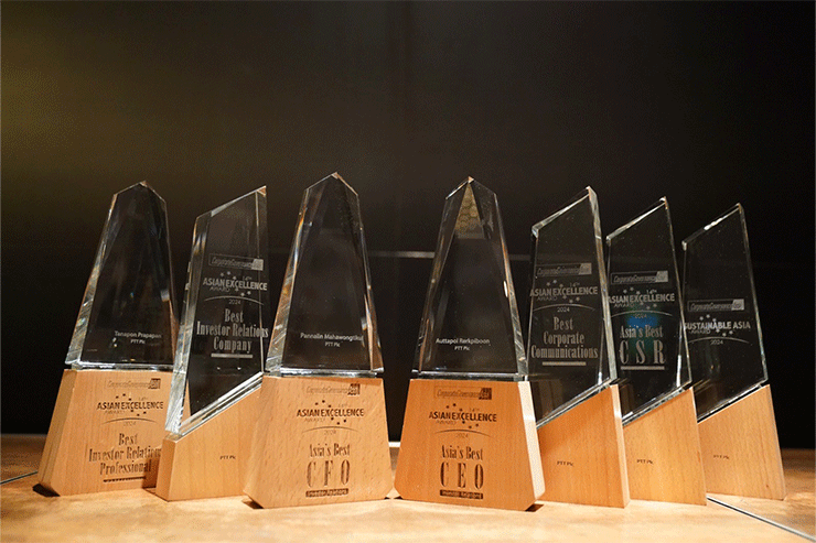 Today - Ms. Pannalin Mahawongtikul, Chief Financial Officer, Mrs. Kanokporn Rodrungruang, Executive Vice President, Corporate Reputation and Social Responsibility and Mr. Tanapon Prapapan, Investor Relations Vice President, PTT Public Company Limited were PTT’s representatives at the 14th Asian Excellence Award 2024, receiving seven awards from the magazine Corporate Governance Asia. This highlighted professional excellence in sustainable business operations and good governance, along with social responsibility and environmental stewardship.PTT is only Thai company awarded in all categories, including Asia's Best CEO, Asia's Best CFO, Asia’s Best CSR, Best Investor Relations Professional, Sustainable Asia Award, Best Investor Relations Company and Best Corporate Communications.