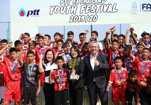 Mrs. Piyada Chongpayuha, Executive Vice President, Corporate Reputation Management and Social Responsibility, PTT Public Company Limited (PTT), together with Mr. Carles Romagosa, Technical Director of the Thai National Team, the Football Association of Thailand presented the Championship Award of "PTT Youth Festival 2019/20" to Sawatboon Academy for the Team under 10 years of age and SCG MuangThong United Team for the Team under 12 years of age at Center for Football Potential Development, Bangkokthonburi University. In line with PTT's sports strategy to improve football skills by joining the tournaments at international standards, the competition is intended to allow young players to gain real experience so that they will further become professional footballers in the future to bring pride to themselves and Thailand.