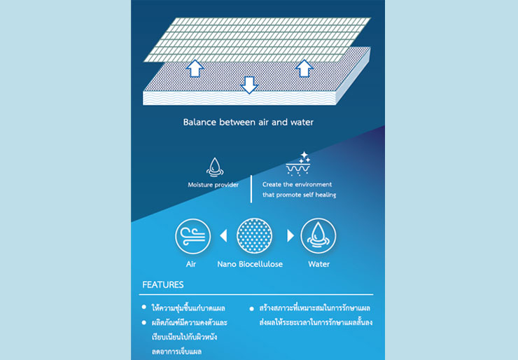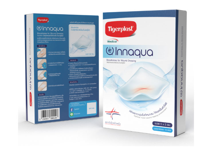 Inaqua, a bio-cellulose wound dressing reserched and developed by PTT Innovation Institute, is mainly composed of purfied water and nanocellulose fibers. It moisturizes the skin to create the optimal conditions for wound healing. The moisture content in the product can help to relieve the sore feeling during the application. Inaqua has been approved for Medical Device Manufacturing Establishment from FDA and has been quality guranteed by the Dermatology Institute. Jack Chia Industries (Thai) Public Company Limited is the official distributor of Inaqua in Thailand.