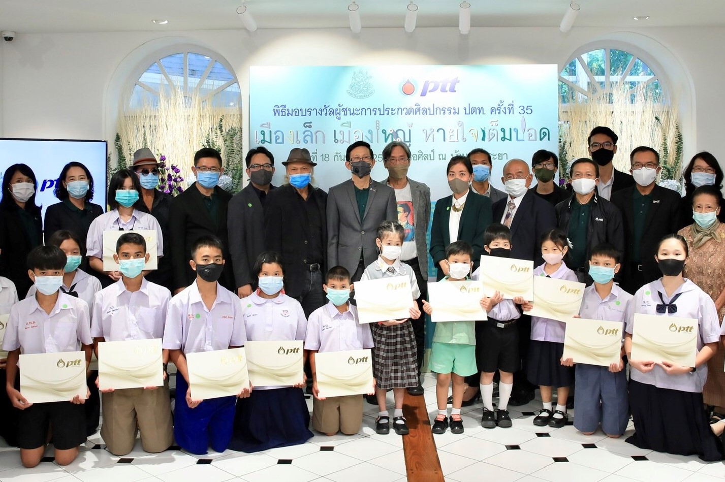 นายอรรถพล ฤกษ์พิบูลย์ ประธานเจ้าหน้าที่บริหารและกรรมการผู้จัดการใหญ่ บริษัท ปตท. จำกัด (มหาชน) (ปตท.) (กลาง) เป็นประธานในพิธีมอบรางวัลแก่ ผู้ชนะการประกวดศิลปกรรม ปตท. ครั้งที่ 35 ภายใต้หัวข้อ “เมืองเล็ก เมืองใหญ่ หายใจเต็มปอด” ที่ หอศิลป์ ณ บ้านเจ้าพระยา ถนนพระอาทิตย์ รวม 24 รางวัล ซึ่ง ปตท. ร่วมกับมหาวิทยาลัยศิลปากรจัดขึ้นต่อเนื่องทุกปี เพื่อเป็นเวทีให้เยาวชนและกลุ่มคนรักศิลปะทุกระดับ ได้สร้างสรรค์ผลงาน แสดงทักษะความสามารถผ่านผลงานศิลปะ ทุกประเภท ทั้งด้านจิตรกรรม ประติมากรรม ภาพพิมพ์ และทัศนศิลป์ ซึ่งผู้สนใจสามารถเข้าชมผลงานที่ได้รับรางวัลในปีนี้ ได้ที่ หอศิลป์ ณ บ้านเจ้าพระยา ถนนพระอาทิตย์ กรุงเทพมหานคร ได้ทุกวัน ยกเว้นวันจันทร์ จนถึงวันที่ 30 กันยายน 2563 โดยไม่เสียค่าใช้จ่ายใดๆ