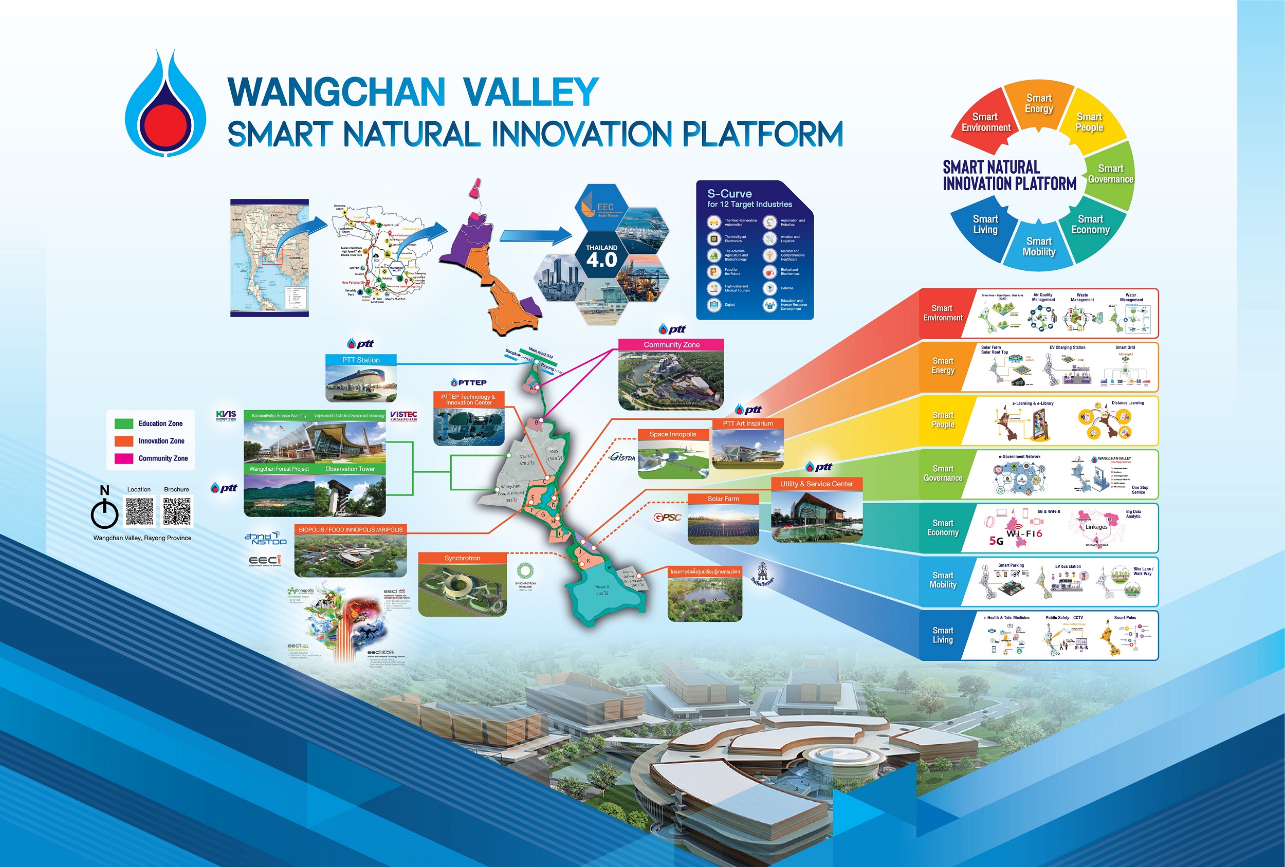 นายอรรถพล ฤกษ์พิบูลย์ ประธานเจ้าหน้าที่บริหารและกรรมการผู้จัดการใหญ่ บริษัท ปตท. จำกัด (มหาชน) (ปตท.) เปิดเผยว่า โครงการพัฒนาพื้นที่วังจันทร์วัลเลย์เพื่อเขตนวัตกรรมระเบียงเศรษฐกิจภาคตะวันออก ตั้งอยู่ที่ ต.ป่ายุบใน อ.วังจันทร์ จ.ระยอง บนพื้นที่ 3,454 ไร่ เป็นโครงการที่ ปตท. มุ่งหวังที่จะสร้างความร่วมมือทุกภาคส่วน ช่วยขับเคลื่อนการวิจัย และพัฒนานวัตกรรม ให้เกิดขึ้นและประสบความสำเร็จในระดับที่สามารถนำไปสร้างธุรกิจใหม่ๆ ตามแนวคิด Powering Thailand’s Transformation เพื่อยกระดับขีดความสามารถการแข่งขันและขับเคลื่อนประเทศให้ก้าวผ่านการเปลี่ยนแปลง พร้อมพัฒนาสังคมและยกระดับคุณภาพชีวิตของคนไทย ดังนั้น ปตท. จึงได้ร่วมมือกับพันธมิตรทั้งภาครัฐและเอกชน ประกอบด้วย สำนักงานการบินพลเรือนแห่งประเทศไทย (CAAT) สำนักงานคณะกรรมการกิจการกระจายเสียง กิจการโทรทัศน์ และกิจการโทรคมนาคมแห่งชาติ (กสทช.) สำนักงานพัฒนาวิทยาศาสตร์และเทคโนโลยีแห่งชาติ (สวทช.) สถาบันวิทยสิริเมธี (VISTEC) บริษัท ทรู คอร์ปอเรชั่น จำกัด (มหาชน) (ทรู) บริษัท แอดวานซ์ อินโฟร์ เซอร์วิส จำกัด (มหาชน) (เอไอเอส) และ บริษัท โทเทิ่ล แอ็คเซ็ส คอมมูนิเคชั่น จํากัด (มหาชน) (ดีแทค) โดยใช้ประโยชน์จากคุณสมบัติที่สำคัญของเทคโนโลยี 5G ในการพัฒนาธุรกิจและนวัตกรรมต่างๆ