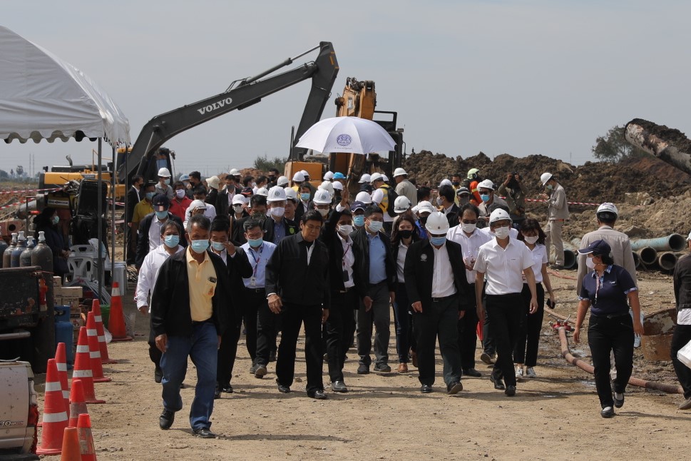นายสุพัฒนพงษ์ พันธ์มีเชาว์ รองนายกรัฐมนตรีและรัฐมนตรีว่าการกระทรวงพลังงาน นายกุลิศ สมบัติศิริ ปลัดกระทรวงพลังงาน พร้อมด้วยผู้บริหารกระทรวงพลังงาน และนายอรรถพล ฤกษ์พิบูลย์ ประธานเจ้าหน้าที่บริหารและกรรมการผู้จัดการใหญ่ บริษัท ปตท. จำกัด (มหาชน) (ปตท.) ได้ลงพื้นที่เกิดเหตุก๊าซธรรมชาติรั่วและเกิดเพลิงไหม้ อ.บางบ่อ จ.สมุทรปราการ เร่งเยียวยา ให้กำลังใจ และมอบถุงยังชีพให้แก่ผู้ได้รับผลกระทบนายอรรถพล กล่าวว่า ปตท. ขอแสดงความเสียใจอย่างยิ่งกับเหตุการณ์ที่เกิดขึ้นต่อผู้ที่ได้รับผลกระทบทั้งญาติผู้เสียชีวิต ผู้ได้รับบาดเจ็บ และทรัพย์สินที่เสียหาย โดยล่าสุดมีผู้เสียชีวิต 3 ราย บาดเจ็บ 66 ราย ซึ่งขณะนี้ปลอดภัยและกลับบ้านได้แล้ว 37 ราย ในการนี้ ปตท. พร้อมรับผิดชอบความเสียหายที่เกิดขึ้นทั้งหมด ทั้งค่ารักษาพยาบาล และค่าความเสียหายของทรัพย์สินอย่างเต็มที่และดีที่สุด อีกทั้ง ปตท. จะมอบเงินเยียวยาเพิ่มเติมเพื่อช่วยเหลือครอบครัวผู้เสียชีวิต รายละ 5,000,000 บาท ผู้ที่ได้รับบาดเจ็บสาหัส รายละ 500,000 บาท ผู้ที่ต้องรักษาตัวอยู่ในโรงพยาบาล รายละ 200,000 บาท และผู้ได้รับบาดเจ็บที่ไม่ต้องรักษาตัวในโรงพยาบาล รายละ 50,000 บาท สำหรับการชดเชยบ้านเรือนและทรัพย์สินที่เกิดความเสียหาย อยู่ระหว่างประเมินมูลค่าและจะบรรเทาผลกระทบให้ดีที่สุดโดยเร็ว นอกจากนั้น ปตท. ได้ร่วมกับจังหวัดสมุทรปราการ จัดเตรียมที่พักชั่วคราว ณ วัดเปร็ง-ราษฎร์บำรุง จัดหาอาหาร น้ำดื่ม และเครื่องใช้ที่จำเป็นให้แก่ผู้ที่ได้รับผลกระทบทุกครัวเรือน และจัดหาที่พักรองรับในช่วงระหว่างการซ่อมแซมบ้านเรือน