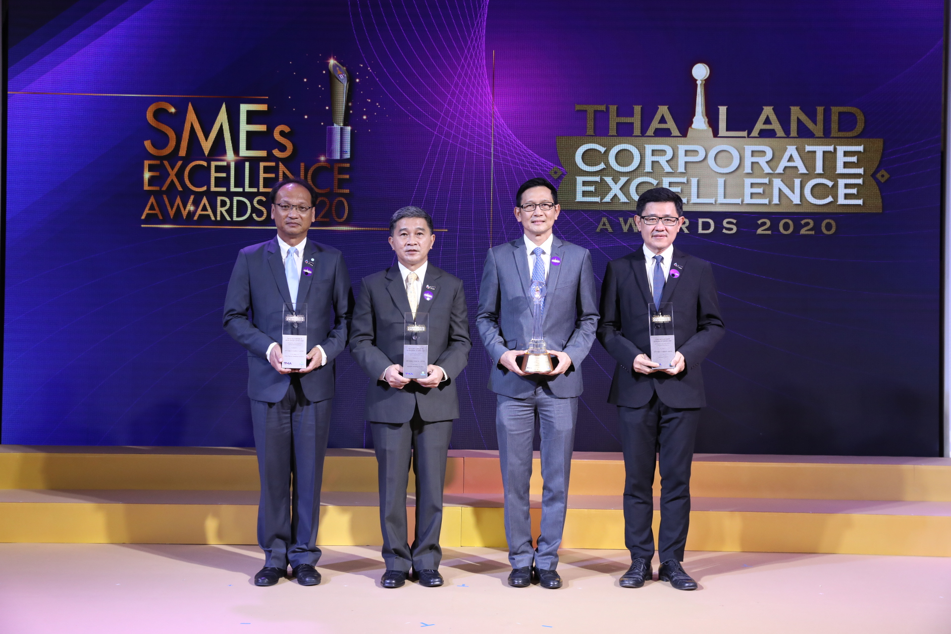 นายอรรถพล ฤกษ์พิบูลย์ ประธานเจ้าหน้าที่บริหารและกรรมการผู้จัดการใหญ่ บริษัท ปตท. จำกัด (มหาชน) (กลางขวา) พร้อมด้วย นายอธิคม เติบศิริ ประธานเจ้าหน้าที่ปฏิบัติการกลุ่มธุรกิจปิโตรเลียมขั้นต้นและก๊าซธรรมชาติ (กลางซ้าย) นายบุรณิน รัตนสมบัติ รองกรรมการผู้จัดการใหญ่บริหารกลยุทธ์กลุ่มธุรกิจปิโตรเลียมขั้นปลาย (ขวา) และนายเทอดเกียรติ พร้อมมูล รองกรรมการผู้จัดการใหญ่บริหารองค์กรและความยั่งยืน (ซ้าย) เข้ารับมอบรางวัลองค์กรที่มีความเป็นเลิศทางด้านการบริหารจัดการ ในงาน Thailand Corporate Excellence Awards 2020 จัดโดยสมาคมการจัดการธุรกิจแห่งประเทศไทย (TMA) ร่วมกับ สถาบันบัณฑิตบริหารธุรกิจศศินทร์แห่งจุฬาลงกรณ์มหาวิทยาลัย เพื่อมอบให้แก่องค์กรที่มีความเป็นเลิศทางด้านการบริหารจัดการ โดยในปีนี้ ปตท. ได้รับ 4 สาขา ได้แก่ ความเป็นเลิศด้านผู้นำ (รางวัลพระราชทาน) ความเป็นเลิศด้านการพัฒนาที่ยั่งยืน ความเป็นเลิศด้านการตลาด และความเป็นเลิศด้านการจัดการทรัพยากรบุคคล สะท้อนถึงความมุ่งมั่นและการพัฒนาศักยภาพองค์กรในภารกิจสร้างความมั่นคงทางพลังงานของชาติ รวมถึงการสร้างความเข้มแข็งทางธุรกิจและการแข่งขัน เพื่อมุ่งขับเคลื่อนประเทศให้เกิดความมั่นคงและเติบโตอย่างยั่งยืน