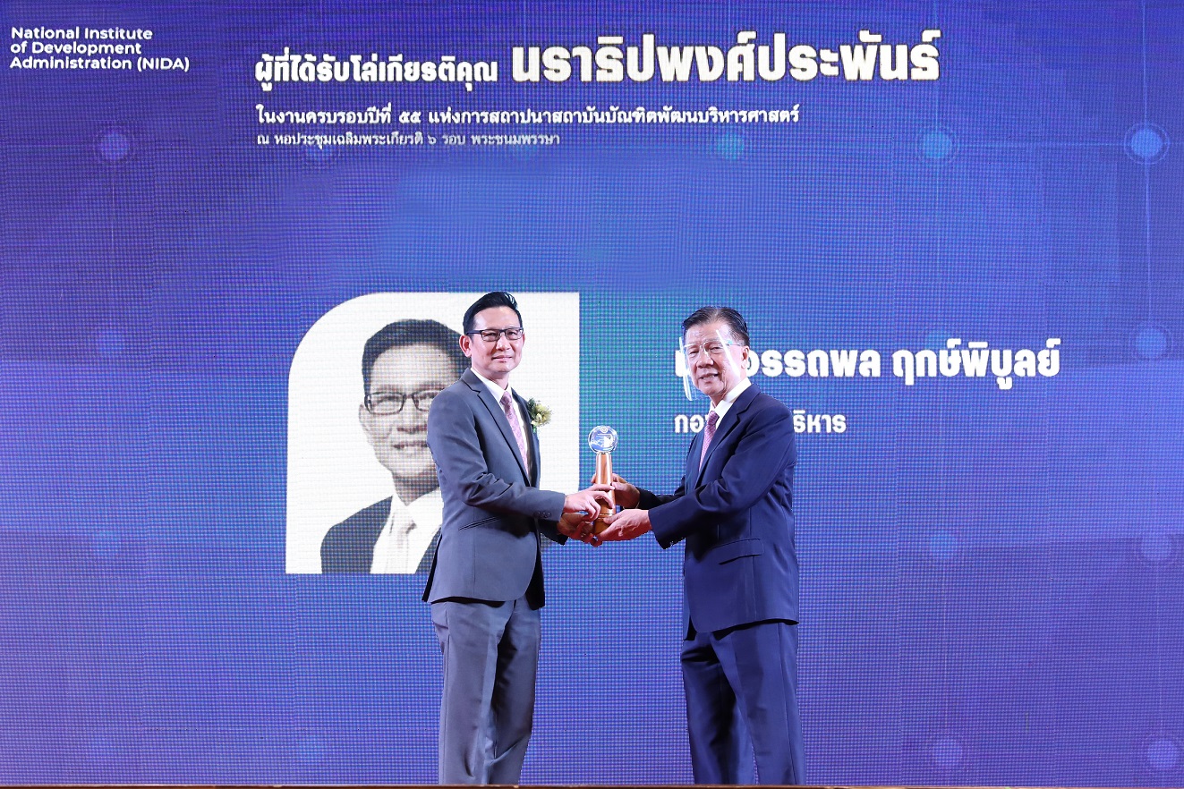 นายอรรถพล ฤกษ์พิบูลย์ ประธานเจ้าหน้าที่บริหาร และกรรมการผู้จัดการใหญ่ บริษัท ปตท. จำกัด (มหาชน) ในฐานะ กรรมการสภาสถาบัน สถาบันบัณฑิตพัฒนบริหารศาสตร์ (NIDA) ได้รับมอบโล่เกียรติคุณ “นราธิปพงศ์ประพันธ์” จาก รศ.ดร. ปรีชา จรุงกิจอนันต์ นายกสภาสถาบันบัณฑิตพัฒนบริหารศาสตร์ ที่จัดขึ้นในงานประชุมวิชาการระดับนานาชาติในวันคล้ายวันสถาปานาครบรอบ 55 ปี สถาบันฯ เนื่องจากเป็นบุคคลที่มีอุปการคุณในการสนับสนุนสถาบันด้านต่าง ๆ มาโดยตลอด ซึ่งในงานได้รับเกียรติจาก ศ.ดร. กำพล ปัญญาโกเมศ อธิการบดี รวมทั้งผู้บริหาร อาจารย์ และเจ้าหน้าที่ของสถาบันฯ ร่วมแสดงความยินดีและขอบคุณ ณ หอประชุมเฉลิมพระเกียรติ 6 รอบ พระชนมพรรษา