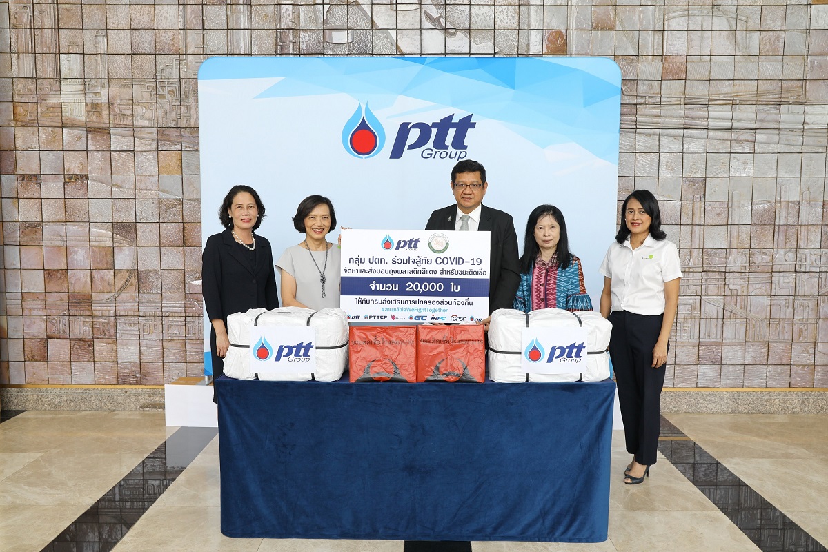นางสาวดวงพร เที่ยงวัฒนธรรม รองกรรมการผู้จัดการใหญ่ กำกับดูแลองค์กรและกิจการสัมพันธ์ บริษัท ปตท. จำกัด (มหาชน) (ที่ 2 จากซ้าย) มอบการสนับสนุนถุงพลาสติกสีแดง สำหรับขยะติดเชื้อ จำนวน 20,000 ถุง มูลค่ากว่า 100,000 บาท สำหรับใช้ในโรงพยาบาลสนาม พื้นที่จังหวัดสมุทรสาคร โดยมี นายธวัชชัย เลี้ยงประเสริฐ หัวหน้าผู้ตรวจราชการกรม (กลาง) และนางสาวอ้อวดี สุนทรวิภาต ผู้อำนวยการกองสิ่งแวดล้อมท้องถิ่น (ที่ 2 จากขวา) กรมส่งเสริมการปกครองท้องถิ่น เป็นผู้แทนรับมอบ เพื่อใช้ในการปฏิบัติงานของเจ้าหน้าที่ในการจัดการขยะติดเชื้ออย่างถูกต้อง รวดเร็ว ลดและป้องกันการแพร่ระบาดของเชื้อโรค รวมถึงความปลอดภัยของผู้ปฏิบัติงานที่เกี่ยวข้องและประชาชน#สานพลังใจWeFightTogether