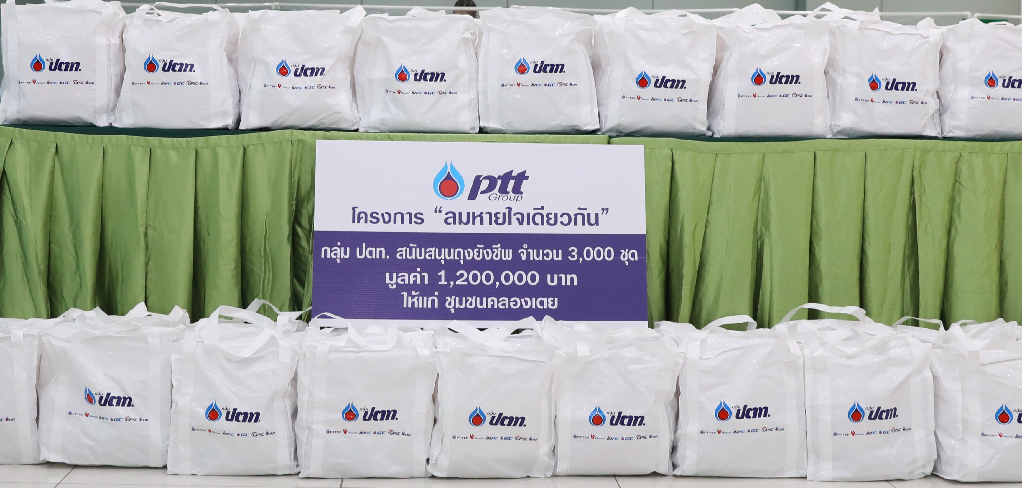 นายอรรถพล ฤกษ์พิบูลย์ ประธานเจ้าหน้าที่บริหารและกรรมการผู้จัดการใหญ่ บริษัท ปตท. จำกัด (มหาชน) (ปตท.) เปิดเผยว่า จากสถานการณ์การระบาดของเชื้อไวรัส COVID-19 ที่ชุมชนในเขตคลองเตย ส่งผลให้เป็นพื้นที่ที่ต้องได้รับการดูแลอย่างเร่งด่วน และขณะนี้พบผู้ป่วยติดเชื้อและผู้สัมผัสเสี่ยงสูงต่อการติดเชื้อจำนวนมาก ปตท. เล็งเห็นถึงความจำเป็นที่ต้องเร่งช่วยเหลือเนื่องจากในชุมชนมีประชากรอาศัยอยู่หนาแน่น อีกทั้งเป็นผู้ที่ได้รับผลกระทบทางเศรษฐกิจจากวิกฤต COVID-19 จึงระดมส่งมอบถุงยังชีพภายใต้โครงการ “ลมหายใจเดียวกัน” จำนวน 3,000 ชุด โดยแต่ละชุดประกอบไปด้วยข้าวสาร บะหมี่กึ่งสำเร็จรูป อาหารแห้ง และเครื่องดื่ม ซึ่งรับประทานได้ทันที พร้อมด้วยเจลแอลกอฮอล์และหน้ากากอนามัย เพื่อนำไปมอบให้แก่คนในชุมชนที่อยู่ระหว่างกักตัว เป็นการช่วยเหลือและบรรเทาความเดือดร้อนเบื้องต้น ให้ประชาชนสามารถใช้ประโยชน์ในการดำรงชีพในช่วงเวลาที่ยากลำบากนี้ นายอรรถพล กล่าวเพิ่มเติมว่า กลุ่ม ปตท. ขอร่วมเป็นหนึ่งพลังใจ ในช่วงเวลาที่ทุกฝ่ายต้องประสบกับภาวะวิกฤต COVID-19 เพื่อให้คนไทยได้กลับมามีรอยยิ้มร่วมกันอีกครั้ง