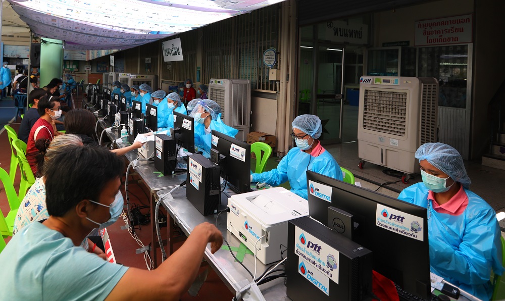 “กลุ่ม ปตท. ได้ร่วมวางระบบงานดิจิทัล และเครื่องมืออิเล็กทรอนิกส์ต่างๆ ซึ่งเป็นอุปกรณ์สำคัญในการปฏิบัติการเชิงรุกครั้งนี้ และสนับสนุนพนักงานกลุ่ม ปตท. ร่วมเป็นจิตอาสาในส่วนของการทำงานกับหน่วยบริการ ช่วยบริหารจัดการคิวผู้เข้ารับวัคซีน ประสานงาน อำนวยความสะดวกแก่ประชาชนและบุคลากรทางการแพทย์ นอกจากนั้นยังได้ร่วมสนับสนุนอาหาร น้ำดื่มแก่เจ้าหน้าที่ บุคลากรทางการแพทย์ในหน่วยต่าง ๆ อีกทั้งจัดเตรียมสินค้าวิสาหกิจชุมชนจากโครงการ ‘ชุมชนยิ้มได้’ ที่ ปตท. ได้ส่งเสริมการฟื้นฟูเศรษฐกิจในภาคเกษตรกร มอบให้กับประชาชนที่มาฉีดวัคซีนอีกด้วย โดยหวังว่า ปตท. จะร่วมเป็นส่วนหนึ่งในการดูแลประชาชนโดยเฉพาะกลุ่มที่จำเป็นต้องเข้าถึงวัคซีนอย่างเร่งด่วน อันจะช่วยยับยั้งการระบาดของ COVID-19 และช่วยขับเคลื่อนต่อลมหายใจเศรษฐกิจของประเทศให้ฟื้นตัวโดยเร็วต่อไป” นายอรรถพล กล่าว