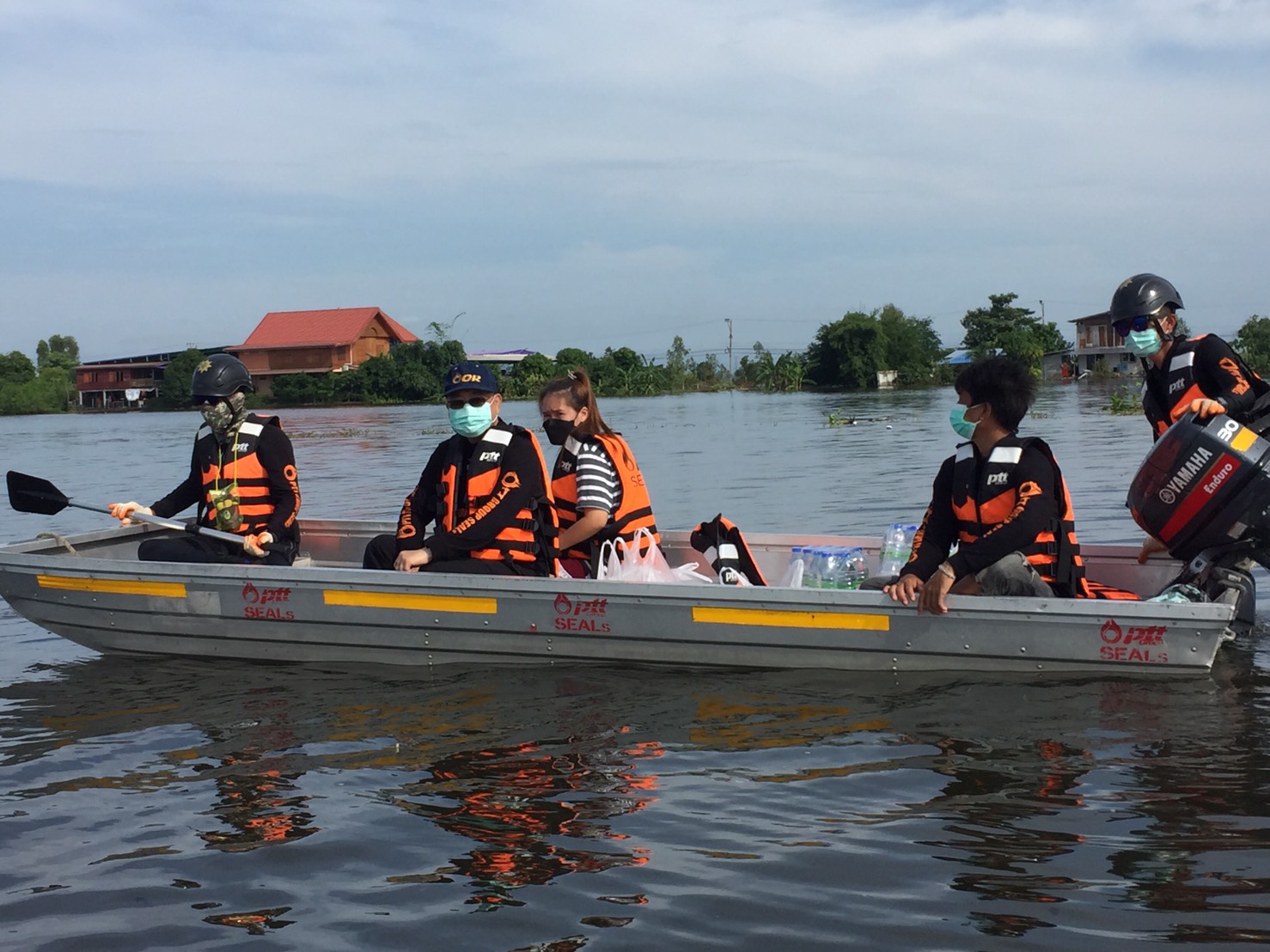 หน่วยปฏิบัติการ PTT Group SEALs กลุ่ม ปตท. เดินหน้าลุยนำอุปกรณ์โดรน เรือท้องแบน ลงพื้นที่ จ.อยุธยา ช่วยเหลือผู้ประสบภัยเร่งด่วนจากจมบาดาล