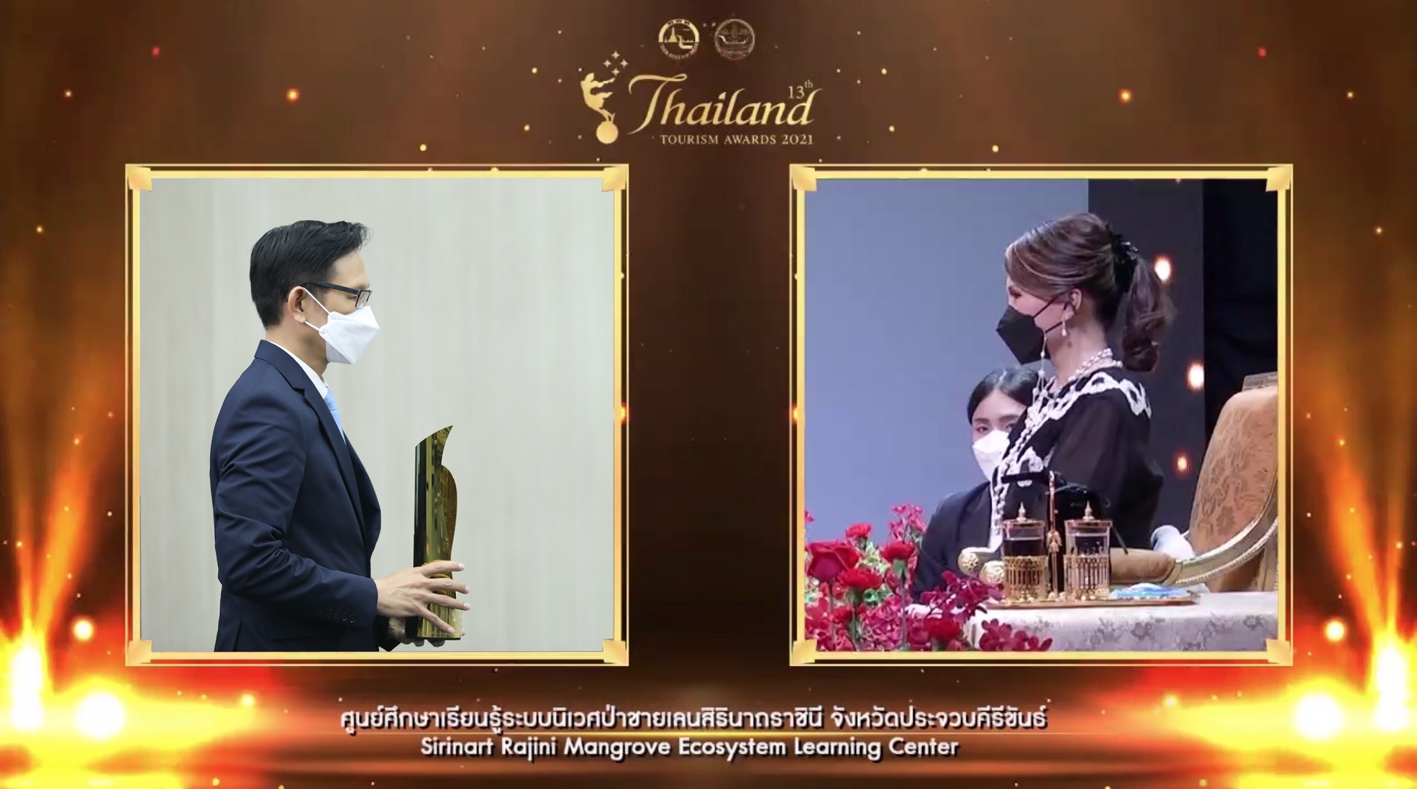 วันนี้ (11 ตุลาคม 2564) - ทูลกระหม่อมหญิงอุบลรัตนราชกัญญา สิริวัฒนาพรรณวดี พระราชทานรางวัลอุตสาหกรรมท่องเที่ยวไทย (Thailand Tourism Awards) ครั้งที่ 13 ประจำปี 2564 หรือรางวัลกินรี ซึ่งเป็นรางวัลรับรองคุณภาพสินค้าและบริการทางการท่องเที่ยว ด้วยมาตรฐานการท่องเที่ยวอย่างยั่งยืน รับผิดชอบต่อสังคม และสิ่งแวดล้อม โดยมี นายอรรถพล ฤกษ์พิบูลย์ ประธานเจ้าหน้าที่บริหารและกรรมการผู้จัดการใหญ่ บริษัท ปตท. จำกัด (มหาชน) (ปตท.) เข้ารับพระราชทานรางวัลผ่านระบบ Zoom Meeting จำนวน 3 รางวัล จากศูนย์เรียนรู้ โดยสถาบันปลูกป่าและระบบนิเวศ ปตท. ประกอบด้วย รางวัลยอดเยี่ยม Thailand Tourism Gold Awards สาขาแหล่งท่องเที่ยวเพื่อการเรียนรู้ 2 รางวัล ได้แก่ ศูนย์เรียนรู้ป่าในกรุง กรุงเทพมหานคร และศูนย์ศึกษาเรียนรู้ระบบนิเวศป่าชายเลนสิรินาถราชินี จ.ประจวบคีรีขันธ์ และ รางวัลดีเด่น Thailand Tourism Awards สาขาแหล่งท่องเที่ยวทางธรรมชาติ ได้แก่ ศูนย์เรียนรู้ป่าวังจันทร์ จ.ระยอง
