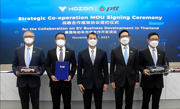 วันนี้ (10 พฤศจิกายน 2564) – ดร. ทวารัฐ สูตะบุตร หัวหน้าผู้ตรวจราชการกระทรวงพลังงาน เป็นประธานในพิธีลงนามบันทึกข้อตกลงความร่วมมือเพื่อศึกษาความเป็นไปได้สำหรับโอกาสทางธุรกิจและการผลิตยานยนต์ไฟฟ้า (EV) ในประเทศไทย ในรูปแบบเสมือนจริง (Virtual Strategic Co-Operation MOU Signing Ceremony) ระหว่าง บริษัท อรุณ พลัส จำกัด (ARUN PLUS) ซึ่งเป็นบริษัทย่อยที่ ปตท. ถือหุ้น 100% สำหรับดำเนินธุรกิจในด้าน EV Value Chain และ บริษัท โฮซอน นิว เอนเนอร์ยี่ ออโต้โมบิล จำกัด (Hozon New Energy Automobile Co., Ltd; Hozon) บริษัทผู้ผลิตรถยนต์ไฟฟ้าจากประเทศจีน โดยมีนายอรรถพล ฤกษ์พิบูลย์ ประธานเจ้าหน้าที่บริหารและกรรมการผู้จัดการใหญ่ บริษัท ปตท. จำกัด (มหาชน) และนายจาง หย่ง ผู้ร่วมก่อตั้งและประธานเจ้าหน้าที่บริหาร โฮซอน (Mr. Zhang Yong, Co-Founder and Chief Executive Officer of Hozon) และนายบุรณิน รัตนสมบัติ รองกรรมการผู้จัดการใหญ่นวัตกรรมและธุรกิจใหม่ ปตท. ร่วมเป็นสักขีพยานในพิธี พร้อมด้วยนายนพดล ปิ่นสุภา ประธานเจ้าหน้าที่ปฏิบัติการกลุ่มธุรกิจใหม่และโครงสร้างพื้นฐาน ปตท. และนายเฉิน เอี้ยวกวง ผู้ร่วมก่อตั้งและประธานเจ้าหน้าที่บริหารการลงทุน โฮซอน (Mr. Chen Yaoguang, Co-Founder and Chief Investment Officer of Hozon) ร่วมลงนาม ความร่วมมือในครั้งนี้มุ่งศึกษาความเป็นไปได้ในการขยายโอกาสทางธุรกิจ EV แบบครบวงจร อาทิ ให้บริการเช่า หรือ จัดจำหน่าย EV พวงมาลัยขวารุ่นแรกของแบรนด์ Neta V ผลิตโดย Hozon และบริการหลังการขายที่เกี่ยวข้องผ่าน EVme ดิจิทัลแพลตฟอร์มของ ARUN PLUS รวมถึงความเป็นไปได้ในการขยายฐานการผลิต EV มายังประเทศไทย ผ่านบริษัทร่วมทุนระหว่าง ARUN PLUS กับ บริษัท หงไห่ พริซิชั่น อินดัสทรี จำกัด หรือ ฟ็อกซ์คอนน์ (Foxconn) เป็นต้น เพื่อขับเคลื่อนระบบนิเวศอุตสาหกรรมยานยนต์ไฟฟ้าสมัยใหม่ ส่งเสริมภาคการผลิตและเศรษฐกิจของประเทศ พร้อมดันไทยสู่สังคม Low Carbon และการเป็นศูนย์กลางยานยนต์ไฟฟ้าแห่งอนาคตเต็มรูปแบบ