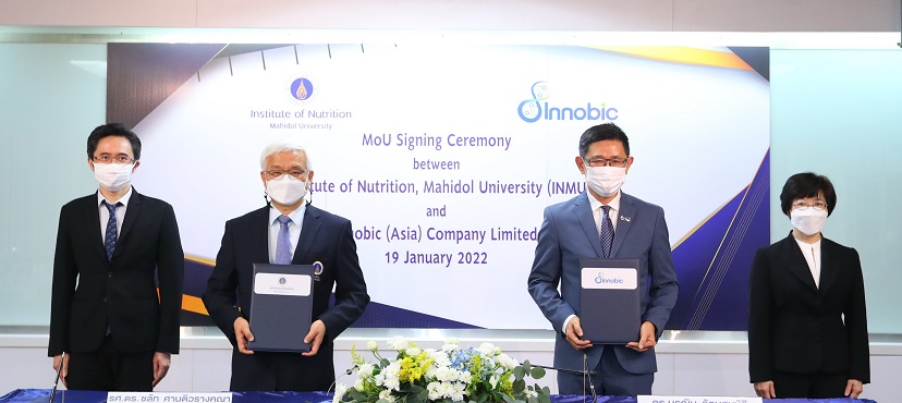สถาบันโภชนาการ มหาวิทยาลัยมหิดล ร่วมกับ อินโนบิก (เอเซีย) ลงนามความร่วมมือ “พัฒนาสูตรและกรรมวิธีการผลิตอาหารปั่นผสมชนิด UHT” สำหรับผู้สูงอายุ และผู้ป่วยที่ไม่สามารถทานอาหารปกติ