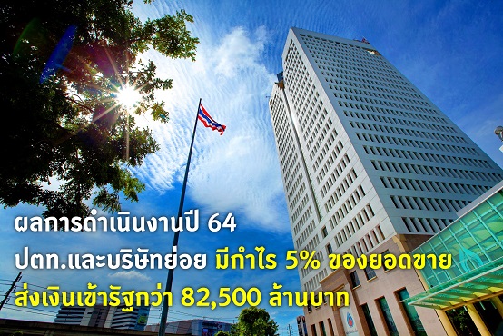 ผลการดำเนินงานปี 64 ปตท.และบริษัทย่อย มีกำไร 5% ของยอดขาย บอร์ด ปตท. อนุมัติเงินปันผลประจำปี รวมเงินส่งรัฐปี 64 กว่า 82,500 ล้านบาท พร้อมเดินหน้าสร้างผลตอบแทนสู่ประเทศทุกมิติต่อเนื่อง