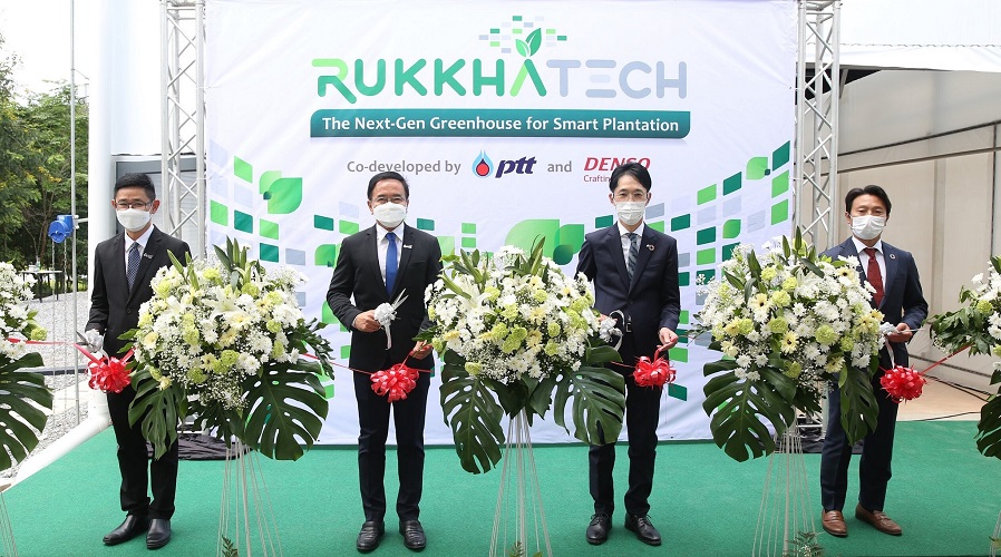 เมื่อเร็ว ๆ นี้ – นายนพดล ปิ่นสุภา ประธานเจ้าหน้าที่ปฏิบัติการกลุ่มธุรกิจใหม่และโครงสร้างพื้นฐาน บริษัท ปตท. จำกัด (มหาชน) (ที่ 2 จากซ้าย) ดร. บุรณิน รัตนสมบัติ รองกรรมการผู้จัดการใหญ่นวัตกรรมและธุรกิจใหม่ บริษัท ปตท. จำกัด (มหาชน) (ซ้าย) Mr. Naoto Inuzuka, CEO and President of DENSO International Asia Co., Ltd. (ที่ 2 จากขวา) และ Mr. Kenichi Yoshii, Vice President DENSO International Asia Co., Ltd. (ขวา) ร่วมพิธีเปิดโรงเรือนโครงการผลิตพืชสมุนไพรด้วยระบบอัจฉริยะ บนเนื้อที่กว่า 4 ไร่ ของศูนย์เรียนรู้ป่าวังจันทร์ พื้นที่วังจันทร์วัลเลย์ จ.ระยอง เพื่อให้ได้มาซึ่งวัตถุดิบสมุนไพรคุณภาพสูงสำหรับต่อยอดในธุรกิจอาหารและเครื่องดื่มฟังก์ชันในระดับอุตสาหกรรม โดยผลผลิตที่ได้จะถูกนำเข้าสู่กระบวนการสกัดและแปรรูปเป็นผลิตภัณฑ์ ภายใต้แบรนด์ “เนเชอรัล-เน็กซ์” (Natural-Nxt) ซึ่งครอบคลุมกระบวนการต่าง ๆ ตลอดต้นน้ำถึงปลายน้ำ ตั้งแต่การเพาะปลูกที่ผสานองค์ความรู้ด้านเกษตรกรรมของไทยร่วมกับเทคโนโลยีสมัยใหม่จากญี่ปุ่น การพัฒนากระบวนการสกัดเพื่อให้ได้สารสกัดคุณภาพสูง และการสร้างสรรค์ผลิตภัณฑ์อาหารและเครื่องดื่มฟังก์ชันที่ตรงตามความต้องการของผู้บริโภค โดยในระยะแรกจะพัฒนาพืชต้นแบบ 2 ชนิด ได้แก่ หญ้าหวาน (Stevia) และกระชายดำ (Black Galingale) ปลูกภายในโรงเรือนอัจฉริยะ จำนวน 6 โรงเรือน ประกอบด้วย โรงเรือนปลูกกระชายดำด้วยระบบ Vertical Farming และโรงเรือนปลูกหญ้าหวานด้วยระบบไฮโดรโพนิกส์แบบ Nutrient Film Technique (NFT) จำนวน 5 โรงเรือน พร้อมด้วยแปลงแม่พันธุ์สำหรับผลิตท่อนพันธุ์ และพัฒนาสายพันธุ์ รวมถึงแปลงทดลองปลูกพืชสมุนไพรชนิดอื่น ๆ เพื่อรองรับความต้องการในอนาคต นอกจากนี้ยังมีศูนย์ควบคุมการปลูกด้วยระบบเซ็นเซอร์อัจฉริยะ (ProFarm Controller) ช่วยควบคุมสภาพแวดล้อมภายในโรงเรือนร่วมกับระบบควบคุมน้ำและสารละลายธาตุอาหาร เทคโนโลยีดังกล่าวจะสามารถยกระดับวัตถุดิบทางการเกษตรของไทยสู่นวัตกรรมอาหารเพื่อสุขภาพที่ปลอดภัยและได้มาตรฐานระดับสากลสำหรับผู้บริโภคในอนาคต