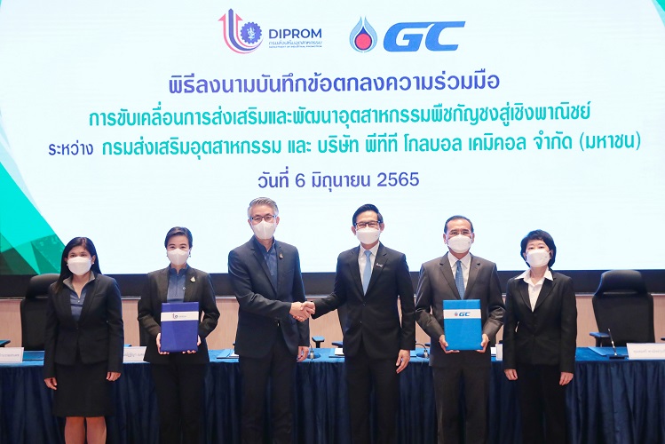 ดร.ณัฐพล รังสิตพล อธิบดีกรมส่งเสริมอุตสาหกรรม เปิดเผยว่า นายสุริยะ จึงรุ่งเรืองกิจ รัฐมนตรีว่าการกระทรวงอุตสาหกรรม ได้มอบหมายให้ กรมส่งเสริมอุตสาหกรรม หรือ ดีพร้อม (DIPROM) ร่วมหารือกับ นายอรรถพล ฤกษ์พิบูลย์ ประธานเจ้าหน้าที่บริหารและกรรมการผู้จัดการใหญ่ บริษัท ปตท. จำกัด (มหาชน) หรือ ปตท. เพื่อบูรณาการการขับเคลื่อนเศรษฐกิจบีซีจี (BCG Economy Model) ตามนโยบายรัฐบาลโดยการนำของ พลเอก ประยุทธ์จันทร์โอชา นายกรัฐมนตรี ทั้งนี้ ในการผลักดันนโยบายสู่การปฏิบัติ ได้ดำเนินการภายใต้ บริษัท พีทีที โกลบอล เคมิคอล จำกัด หรือ GC ซึ่งเป็นหน่วยงานภาคเอกชนที่มีความเชี่ยวชาญด้านการผลิตเม็ดพลาสติก ได้ร่วมกันต่อยอดการวิจัยพัฒนาสูตรการผลิตพลาสติกชีวภาพจากพืชกัญชงในเชิงพาณิชย์สู่เศรษฐกิจชีวภาพ (Bio Economy) โดยดีพร้อมจะรับบทบาทในการจัดหาเส้นใยกัญชงเพื่อเป็นวัสดุในการวิจัย พร้อมส่งเสริมการเข้าถึงสำหรับธุรกิจที่สนใจ เพื่อเสริมขีดความสามารถในการแข่งขันให้กับอุตสาหกรรมพลาสติกชีวภาพของไทย นอกจากนี้ ยังมีการขยายผลไปสู่การพัฒนาศักยภาพของผู้ประกอบการในด้านการบริหารการผลิต การแปรรูป รวมทั้งการใช้ประโยชน์จากเส้นใยสั้น หรือเส้นใยชีวภาพที่เหลือทิ้ง ซึ่งถือเป็นการเพิ่มมูลค่าวัสดุและลดปริมาณขยะในภาคอุตสาหกรรมสู่เศรษฐกิจหมุนเวียน (Circular Economy) ซึ่งปัจจุบันพบว่าการประกอบการในภาคอุตสาหกรรม มีปริมาณกากอุตสาหกรรมชนิดไม่อันตรายเกิดขึ้น จำนวนมากกว่า 17 ล้านตันต่อปี (ที่มา : กองบริหารจัดการกากอุตสาหกรรม) ซึ่งต้องใช้ทรัพยากรเป็นจำนวนมากในการดูแลและกำจัด หนึ่งในนั้น คือ ขยะพลาสติกที่มีจำนวน 4.8 ล้านตัน/ปีที่จะมีแนวโน้มเพิ่มปริมาณมากขึ้น