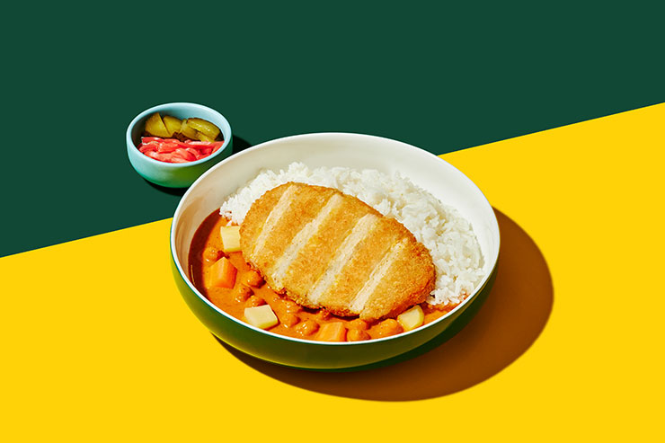 “Massaman Katsu Rice Bowl” (ข้าวมัสมั่นคัตสึ) คัตซึ plant-based ทอดในน้ำมันถั่วเหลืองจนกรอบ ราดด้วยน้ำแกงรสชาติเข้มข้น อร่อยแบบไทยสไตส์ญี่ปุ่น
