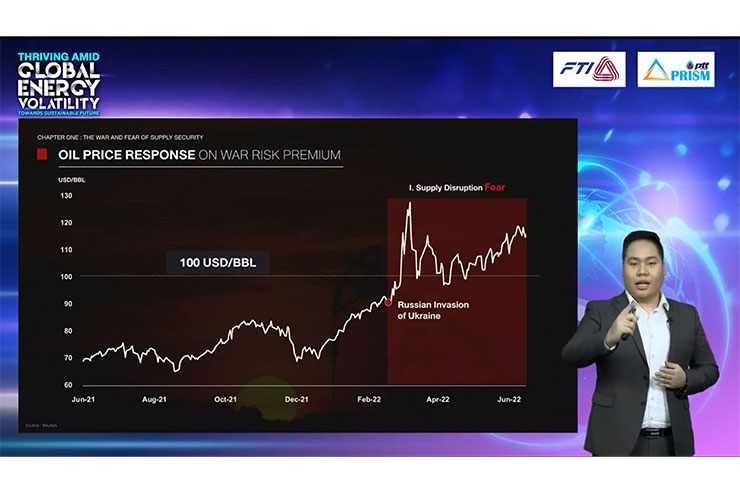นายบัณฑิต ธรรมประจำจิต ประธานกลุ่มอุตสาหกรรมโรงกลั่นน้ำมันปิโตรเลียม เปิดเผยว่า  ในปี 2022 นี้  หลายประเทศต่างให้ความสำคัญเรื่องความมั่นคงด้านพลังงานและการเข้าถึงพลังงานเป็นประเด็นหลัก  อย่างไรก็ตาม ด้วยสภาพภูมิอากาศทั่วโลกที่แปรปรวน  รวมถึงภัยธรรมชาติที่ทวีความรุนแรงมากขึ้นในปัจจุบัน  ทำให้เราต้องตระหนักและร่วมมือกันแก้ไขปัญหา Climate Change อย่างต่อเนื่องจริงจัง  โดยนักวิเคราะห์สถานการณ์พลังงาน กลุ่ม ปตท. หรือ “PRISM Experts  ยังคงมุ่งมั่นนำเสนอข้อมูลและวิเคราะห์ทิศทางราคาน้ำมัน  รวมถึง  ความท้าทายที่อุตสาหกรรมพลังงานต้องเผชิญ  เป็นที่มาของหัวข้อสัมมนาในปีนี้ “Thriving amid Global Energy Volatility towards Sustainable Future : เติบโตอย่างยั่งยืน ท่ามกลางความผันผวนของพลังงานโลก”