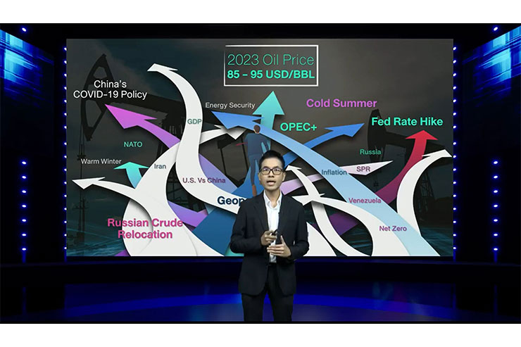 ทีมนักวิเคราะห์สถานการณ์น้ำมัน กลุ่ม ปตท. (PRISM Experts) ร่วมกับ กลุ่มอุตสาหกรรมโรงกลั่นน้ำมันปิโตรเลียม สภาอุตสาหกรรมแห่งประเทศไทย คาดการณ์สถานการณ์พลังงานภาพรวมปี 2023 ยังคงเต็มไปด้วยความผันผวน จากความไม่แน่นอนด้านภูมิรัฐศาสตร์ และนโยบายทางการเงินเพื่อรักษาเสถียรภาพเศรษฐกิจโลก โดยคาดการณ์ราคาน้ำมันดิบ Dubai เฉลี่ยปี 2023 ในกรอบ 85-95 เหรียญสหรัฐฯ ต่อบาร์เรล ด้วยเชื่อว่าเศรษฐกิจจะเริ่มฟื้นตัวในช่วงครึ่งหลังของปี 2023 แต่อุปทานน้ำมันจากรัสเซียอาจจะหายไปจากตลาด หลังยุโรปเริ่มการคว่ำบาตรการนำเข้าน้ำมันรัสเซียเต็มรูปแบบในปลายปี 2022  รวมทั้งความร่วมมือของ OPEC+ ในการพยุงราคาน้ำมัน อย่างไรก็ตาม ต้องจับตาว่าผู้ผลิตรายอื่นๆ จะสามารถเพิ่มการผลิต เพื่อชดเชยอุปทานที่ขาดหายไปจากรัสเซียได้หรือไม่ รวมถึงประเด็นการยกเลิกคว่ำบาตรต่ออิหร่าน และเวเนซุเอล่า ที่อาจเป็น Game Changer ในการเพิ่มอุปทานน้ำมันดิบเข้ามาในตลาด