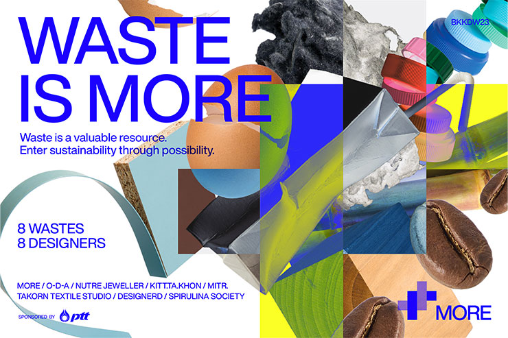 ความตั้งใจของโครงการ MORE โดย ปตท. ในการใช้นวัตกรรมเปลี่ยนขยะให้กลายเป็นทรัพยากรทดแทน โดยร่วมตีความวัสดุเหลือทิ้ง ได้แก่ เยื่อกาแฟ เศษใบอ้อย ฝุ่นไม้ อะลูมิเนียมฟอยล์จากกล่องยูเอชที ฝุ่นผ้า เศษแผ่น PVC ฝาขวดน้ำ เปลือกไข่ ร่วมกับ 8 นักออกแบบ ได้แก่ MORE, o-d-a, NUTRE JEWELLER, Kitt.ta.khon, mitr., TAKORN TEXTILE STUDIO, Designerd และ Spirulina Society ในการสรรสร้างความเป็นไปได้ใหม่ ๆ ในครั้งนี้ เป็นการตอกย้ำความมุ่งหวังของ ปตท. ในการผลักดันให้เศรษฐกิจ BCG ของประเทศเติบโตอย่างยั่งยืน อีกทั้งยังหวังผลให้เกิดการกระจายรายได้และลดความเหลื่อมล้ำให้กับเกษตรกรและชุมชนอีกด้วย โดยนิทรรศการ Waste is MORE นี้ เป็นส่วนหนึ่งของงาน Bangkok Design Week 2023 จัดขึ้นระหว่างวันที่ 4 - 12 กุมภาพันธ์ 2566 ณ อาคารไปรษณีย์กลางบางรัก กรุงเทพมหานคร ซึ่งผู้สนใจสามารถติดต่อข้อมูลเพิ่มเติมได้ที่ Facebook Page : waste.wasteismore