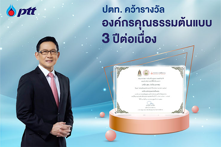 นายอรรถพล ฤกษ์พิบูลย์ ประธานเจ้าหน้าที่บริหารและกรรมการผู้จัดการใหญ่ บริษัท ปตท. จำกัด (มหาชน) รับรางวัลองค์กรคุณธรรมต้นแบบ จากคณะกรรมการส่งเสริมคุณธรรมแห่งชาติ สะท้อนการยอมรับในการดำเนินธุรกิจอย่างมีธรรมาภิบาล ควบคู่ไปกับการดูแลสังคม ชุมชน และสิ่งแวดล้อมอย่างยั่งยืนรางวัลองค์กรคุณธรรมต้นแบบดังกล่าว พิจารณาจากเกณฑ์การประเมินองค์กรคุณธรรม ตามโครงการส่งเสริมชุมชน องค์กร อำเภอ และจังหวัดคุณธรรม แสดงถึงเจตนารมณ์ขององค์กรที่ส่งเสริมและพัฒนาคุณธรรมในองค์กร ยึดมั่นและปฏิบัติตามหลักธรรมทางศาสนา น้อมนำหลักปรัชญาเศรษฐกิจพอเพียงและวิถีวัฒนธรรมไทยที่ดีงามมาเป็นหลัก เพื่อให้สังคมมีความเข้มแข็ง สร้างสังคมคุณธรรม มีความมั่นคง มั่งคั่ง ยั่งยืน และน่าอยู่ร่วมกัน