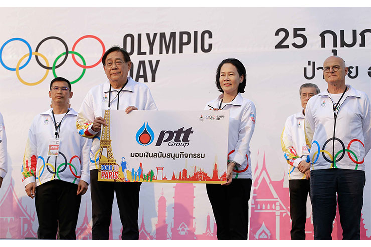 เมื่อเร็ว ๆ นี้ - นางกนกพร รอดรุ่งเรือง ผู้ช่วยกรรมการผู้จัดการใหญ่บริหารชื่อเสียงองค์กรและกิจการเพื่อสังคม บริษัท ปตท. จำกัด (มหาชน) (ปตท.) สนับสนุน กิจกรรม “เดิน - วิ่ง OLYMPIC 2023” ณ ลานกิจกรรมป่าเป๋ย จังหวัดน่าน ภายใต้แนวคิด OLYMPIC DAY PLAY LAND ซึ่งจัดโดยคณะกรรมการโอลิมปิกแห่งประเทศไทยในพระบรมราชูปถัมภ์ โดยมี นายพิชัย ชุณหวชิระ รองประธานกรรมการ โอลิมปิคแห่งประเทศไทย ในพระบรมราชูปถัมภ์ ประธานอนุกรรมการฝ่ายกีฬาเพื่อมวลชนและสิ่งแวดล้อม ประธานจัดการแข่งขัน นำทัพนักกีฬาเปิดงานพร้อมหน่วยงานจากภาครัฐและเอกชน เพื่อกระตุ้นให้คนไทยหันมาออกกำลังกาย สร้างเสริมสุขภาพให้แข็งแรง สอดคล้องความมุ่งมั่นของ ปตท. ในการส่งเสริมกิจกรรมด้านกีฬามาอย่างต่อเนื่อง