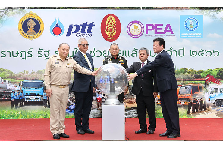 วันนี้ (17 มีนาคม 2566) – พลเอก ณรงค์พันธ์ จิตต์แก้วแท้ ผู้บัญชาการทหารบก นายประสงค์ อินทรหนองไผ่ รองกรรมการผู้จัดการใหญ่บริหารกลยุทธ์กลุ่มธุรกิจปิโตรเลียมขั้นปลาย บริษัท ปตท. จำกัด (มหาชน) ในฐานะผู้แทน ปตท. พร้อมด้วยผู้บริหารหน่วยงานภาครัฐและรัฐวิสาหกิจ จากกรมทรัพยากร น้ำบาดาล การประปาส่วนภูมิภาค และการไฟฟ้าส่วนภูมิภาค ร่วมเปิดโครงการ “ราษฎร์ รัฐ ร่วมใจ ช่วยภัยแล้ง” ประจำปี 2566 ณ กองบัญชาการกองทัพบก โดยในปีนี้ ปตท. ร่วมสนับสนุนความช่วยเหลือรวมมูลค่ากว่า 2,900,000 บาท เพื่อบรรเทาความเดือดร้อนของประชาชนและเกษตรกรที่ประสบปัญหาภัยแล้งจากการขาดแคลนน้ำในการอุปโภคบริโภค โดยเฉพาะเขตทุรกันดารและพื้นที่ห่างไกล