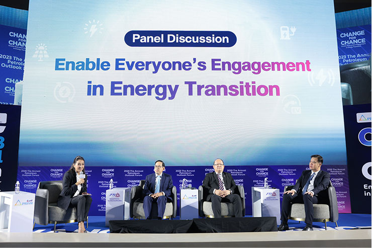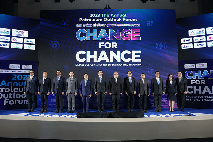 นายบัณฑิต ธรรมประจำจิต ประธานกลุ่มอุตสาหกรรมโรงกลั่นน้ำมันปิโตรเลียม กล่าวว่า แม้ในปัจจุบันสถานการณ์โควิด-19 ได้คลี่คลายลง แต่โลกยังต้องเผชิญกับความท้าทายอย่างมาก ทั้งความขัดแย้งทางภูมิรัฐศาสตร์ ระหว่างรัสเซียและยูเครน สหรัฐอเมริกากับจีน สงครามระหว่างอิสราเอลกับฮามาส ผลกระทบเชิงเศรษฐกิจจากการขึ้นอัตราดอกเบี้ยนโยบายของธนาคารกลางต่าง ๆ เพื่อสกัดเงินเฟ้อ และวิกฤตภาคอสังหาริมทรัพย์ที่ขาดสภาพคล่องในประเทศจีนจากการที่รัฐบาลเข้ามาแทรกแซงโดยสร้างกฎระเบียบให้เข้มงวดมากขึ้น รวมทั้งนโยบายการปล่อยก๊าซเรือนกระจกสุทธิเป็นศูนย์หรือ “Net Zero” ของประเทศต่าง ๆ อย่างไรก็ตาม การเดินหน้าสู่ยุคพลังงานแห่งอนาคต ให้เกิด “ความยั่งยืนด้านพลังงาน” จะเป็นการสร้างสมดุลระหว่างความท้าทายด้านพลังงาน 3 ประการ หรือ “Energy Trilemma” คือ 1) ความมั่นคงทางพลังงาน (Energy Security) คือการจัดหาพลังงานพื้นฐานและความสามารถที่จะตอบสนองความต้องการทั้งในปัจจุบันและอนาคต 2) ความเป็นธรรมทางพลังงาน (Energy Equity) คือการจัดหาพลังงานที่สามารถเข้าถึงได้ในราคาที่เหมาะสม และ 3) ความยั่งยืนด้านสิ่งแวดล้อม (Environmental Sustainability) เป็นการจัดหาพลังงานที่ปล่อยก๊าซเรือนกระจกในปริมาณที่ต่ำ นับเป็นความท้าทายของกลุ่มบริษัทพลังงาน ในการปรับตัวเพื่อเปลี่ยนผ่านด้านพลังงาน จึงเป็นที่มาของแนวคิด “Change for Chance: ปรับ เปลี่ยน เพื่อไปต่อ สู่ยุคพลังงานแห่งอนาคต” ของงานสัมมนาในปีนี้ โดยนักวิเคราะห์สถานการณ์พลังงาน กลุ่ม ปตท. หรือ “PRISM Experts” ยังคงมุ่งมั่นนำเสนอข้อมูลและวิเคราะห์ทิศทางราคาน้ำมัน รวมถึงความท้าทายที่อุตสาหกรรมพลังงานต้องเผชิญ