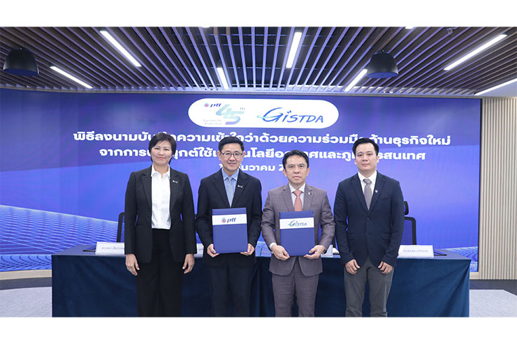 วันนี้ (15 ธันวาคม 2566) - ดร.บุรณิน รัตนสมบัติ ประธานเจ้าหน้าที่ปฏิบัติการกลุ่มธุรกิจใหม่และโครงสร้างพื้นฐาน บริษัท ปตท. จำกัด (มหาชน) (ปตท.) (ที่ 2 จากซ้าย) พร้อมด้วย ดร.ปกรณ์ อาภาพันธุ์ ผู้อำนวยการสำนักงานพัฒนาเทคโนโลยีอวกาศและภูมิสารสนเทศ สำนักงานพัฒนาเทคโนโลยีอวกาศและภูมิสารสนเทศ (องค์การมหาชน) (สทอภ. หรือ GISTDA) (ที่ 2 จากขวา) ร่วมลงนามในบันทึกความเข้าใจความร่วมมือด้านธุรกิจใหม่จากการประยุกต์ใช้เทคโนโลยีอวกาศและภูมิสารสนเทศ เพื่อแสวงหาโอกาสในด้านธุรกิจอวกาศทั้งห่วงโซ่อุปทานตั้งแต่อุตสาหกรรมต้นน้ำ (Upstream) อาทิ ระบบและบริการออกแบบและผลิตดาวเทียม การขนส่งวัตถุขึ้นสู่อวกาศ การสำรวจและวิจัยในอวกาศ การประยุกต์ใช้วัสดุคาร์บอนขั้นสูง (Advanced Carbon Material) จากกลุ่ม ปตท. เพื่อเทคโนโลยีอวกาศ ซึ่งก่อให้เกิดการพัฒนาต่อยอดไปยังธุรกิจปลายน้ำ (Downstream) ที่ครอบคลุมโครงสร้างพื้นฐานทางอวกาศ รวมถึงผลิตภัณฑ์และบริการที่เกี่ยวเนื่องกับข้อมูลดาวเทียม ตลอดจนการประยุกต์ใช้เทคโนโลยีอวกาศและภูมิสารสนเทศในการบริหารจัดการทรัพยากรธรรมชาติและสิ่งแวดล้อม อาทิ การประเมินคาร์บอนในพื้นที่สีเขียว เพื่อนำไปสู่การแสวงหาโอกาสทางธุรกิจในอุตสาหกรรมดาวเทียมเพื่อเทคโนโลยีพลังงานใหม่ สอดรับกับวิสัยทัศน์ Powering Life with Future Energy and Beyond ของ ปตท.