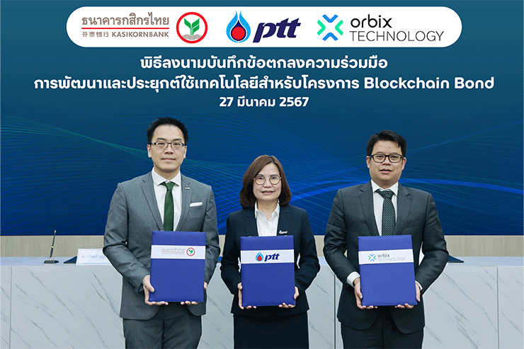 ปตท. จับมือ กสิกรไทย - ออร์บิกซ์ เทค นำร่องพัฒนานวัตกรรมใหม่บนบล็อกเชน สำหรับธุรกรรมทางการเงินในการออกตราสารหนี้