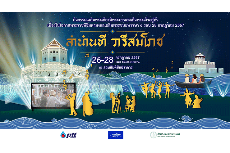 - กิจกรรมแสดง แสง สี เสียง เฉลิมพระเกียรติ “ลำนำนที วารีสมโภช” โดย ปตท. ได้จัดกิจกรรมสุดพิเศษ ณ สวนสันติชัยปราการ (ป้อมพระสุเมรุ) ถนนพระอาทิตย์ กรุงเทพฯ ระหว่างวันที่ 26 – 28 กรกฎาคม 2567 เวลา 15.00 – 21.00 น. โดยภายในงานมีกิจกรรมที่น่าสนใจมากมาย อาทิ เปิดล่องเรือเส้นทางพิเศษ เยี่ยมชมการพัฒนาสายน้ำและวิถีชุมชนคลองบางลำพู ตามพระบรมราโชบายของในหลวงรัชกาลที่ 10 ชมหนังสั้นเฉลิมพระเกียรติฯ การแสดงแสง สี เสียง “พรจากสายน้ำ” ด้วยเทคนิค Immersive 3D Mapping ชมนิทรรศการเฉลิมพระเกียรติฯ การละเล่นจากชุมชนบางลำพูและดนตรีในสวน พร้อมร่วมทำกิจกรรม Workshop ศิลปะบนผืนผ้าใบ และการส่งเสริมศิลปวัฒนธรรมไทย อีกทั้งชิมช้อปอาหารเด็ดย่านบางลำพู และ Street food ระดับมิชลิน และร้านค้าชุมชนมากมาย