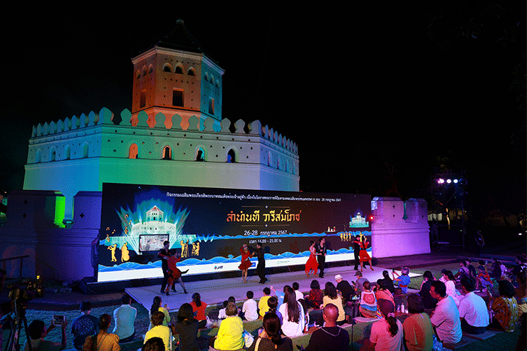 การแสดงสุดพิเศษ แสง สี เสียง เรื่อง “พรจากสายน้ำ” ด้วยเทคนิค Immersive 3D Mapping ที่บริเวณป้อมพระสุเมรุบอกเล่าเรื่องราวการเดินทางไปกับสายน้ำสู่อดีตกาล ผ่านตัวละครคนรุ่นใหม่ ที่ได้พบกับ “เทพธิดาสายน้ำ” ที่เชิญชวนให้ขอ ”พรจากสายน้ำ“ ร่วมสัมผัสวิถีชีวิตคนไทยที่ผูกพันกับสายน้ำมาทุกยุคสมัย เมื่อเมืองขยายตัว ประชากรเพิ่มมากขึ้น สภาพแวดล้อมเปลี่ยนแปลงไปตามกาลเวลา แหล่งน้ำและคูคลองอาจจะถูกละเลย จนกระทั่งในหลวงรัชกาลที่ 9 และรัชกาลที่ 10 ทรงมีพระบรมราโชบายและสืบสานการพัฒนาสายน้ำ จึงได้เห็นภาพความสุขของประชาชนกลับมาอีกครั้ง