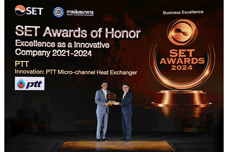 สำหรับรางวัลเกียรติยศแห่งความสำเร็จด้านนวัตกรรม (SET Awards of Honor) ปตท. ได้รับจากการคว้ารางวัล Best Innovative Company Awards 4 ปีติดต่อกัน ได้แก่ ปี 2021 ได้รับรางวัลจากผลงานการพัฒนานวัตกรรมวัสดุปิดแผลไบโอเซลลูโลสคอมพอสิต Innaqua ปี 2022 ได้รับจากนวัตกรรม PTT EV Charger and Charging Platform ปี 2023 ได้รับจากผลงานตัวเร่งปฏิกิริยา PTT SCR และในปีนี้เป็นผลงานการพัฒนา “นวัตกรรมเครื่องแลกเปลี่ยนความร้อนไมโครสเกล หรือ PTT MicroHX” ที่ช่วยเพิ่มประสิทธิภาพการใช้พลังงานในนิคมอุตสาหกรรม ด้วยการนำเอาพลังงานเหลือทิ้งในรูปแบบความร้อนหรือความเย็น หมุนเวียนกลับมาใช้ในกระบวนการ (Energy Recovery) ให้เกิดประโยชน์ สามารถลดค่าใช้จ่ายด้านพลังงานและการปลดปล่อยคาร์บอนได้อย่างมีนัยสำคัญ รวมทั้งช่วยลดผลกระทบด้านสิ่งแวดล้อมต่อสังคมและชุมชน ลดการพึ่งพาเทคโนโลยีจากต่างประเทศ เพิ่มขีดความสามารถทางการแข่งขันทั้งในระดับอุตสาหกรรมและระดับประเทศ อีกทั้งยังเป็นนวัตกรรมใหม่ที่ได้รับการจดสิทธิบัตรแล้วจำนวนกว่า 40 สิทธิบัตร ใน 9 ประเทศ ได้แก่ สหรัฐอเมริกา อังกฤษ เยอรมัน จีน เกาหลี ญี่ปุ่น มาเลเซีย เมียนมา และอินเดีย ซึ่งในปัจจุบันมีการติดตั้งใช้งานเชิงพาณิชย์ที่โรงงานผลิตถุงมือยาง จังหวัดชลบุรี และบริษัท พีทีที แอลเอ็นจี จำกัด (PTTLNG) เพื่อใช้ในโครงการ LNG Terminal 1 ที่นิคมอุตสาหกรรมมาบตาพุด จังหวัดระยอง ปัจจุบันอยู่ระหว่างต่อยอดเชิงพาณิชย์ไปยังกลุ่มธุรกิจอุตสาหกรรมทั้งในและนอกกลุ่ม ปตท. อีกด้วย