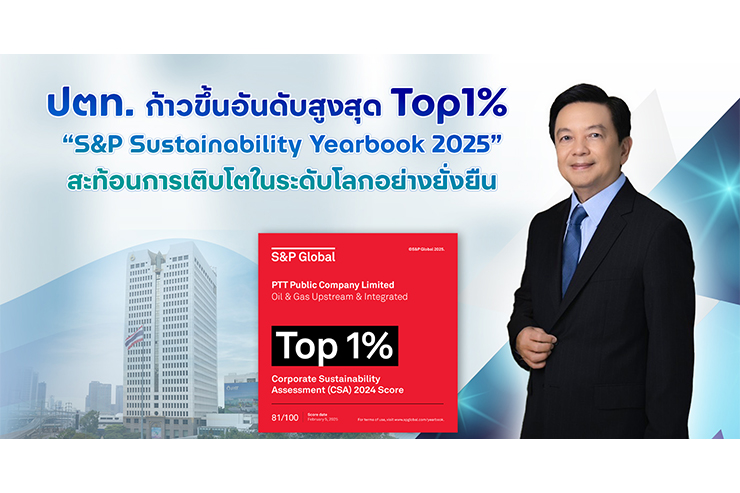 ปตท. ก้าวขึ้นอันดับสูงสุด Top1% “S&P Sustainability Yearbook 2025” สะท้อนการเติบโต ในระดับโลกอย่างยั่งยืน