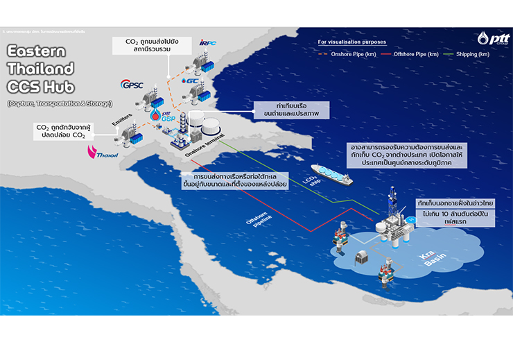 การดำเนินงานด้านความยั่งยืน กลุ่ม ปตท. ยึดหลักการขับเคลื่อนการเปลี่ยนผ่านด้านพลังงานอย่างสมดุลใน 3 มิติ ได้แก่ 1. เสริมสร้างความมั่นคงทางพลังงาน มีการกระจายความเสี่ยง สามารถรองรับการเติบโตทางเศรษฐกิจ (Security) 2. จัดหาแหล่งพลังงานที่สามารถเข้าถึงได้ในราคาที่เหมาะสม ด้วยต้นทุนที่แข่งขันได้ (Affordability / Competitiveness) และ 3. ขับเคลื่อนธุรกิจอย่างยั่งยืน ควบคู่การลดก๊าซเรือนกระจก (Sustainability) ดำเนินการศึกษา Eastern Thailand CCS Hub แล้วเสร็จ โดยมีการ FID โครงการ CCS ในแหล่งอาทิตย์ พร้อมแสวงหาโอกาสการลงทุนในต่างประเทศ ด้านธุรกิจไฮโดรเจน ศึกษาโอกาสในการจัดหาแอมโมเนียคาร์บอนต่ำมาใช้เป็นเชื้อเพลิงร่วมในโรงไฟฟ้า พร้อมลงนามข้อตกลงความร่วมมือศึกษาความเป็นไปได้ทางเทคนิคและเชิงพาณิชย์ในการจัดหาไฮโดรเจนสีเขียวและแอมโมเนียสีเขียวที่ผลิตในประเทศอินเดียสู่ประเทศไทยร่วมกับ Avaada Ventures Private Limited