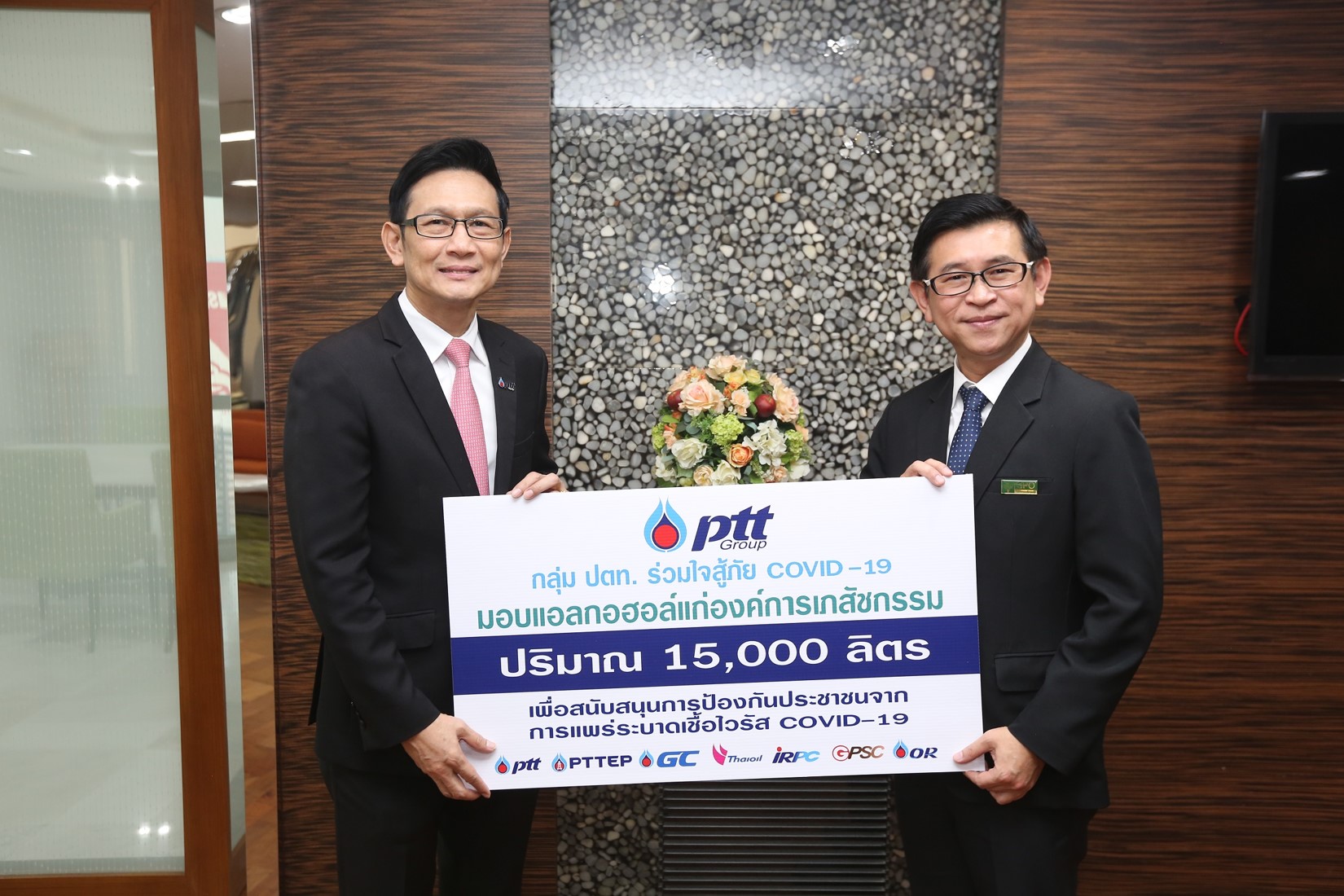 สืบเนื่องจากสถานการณ์การแพร่ระบาดของไวรัสโคโรนาสายพันธุ์ใหม่ 2019 (COVID-19) ในประเทศไทย ทำให้ผลิตภัณฑ์ที่ใช้ในเชิงการแพทย์ อาทิ แอลกอฮอล์ มีไม่เพียงพอต่อความต้องการในตลาด กรมสรรพสามิตจึงได้ออกประกาศ 2 ฉบับ เพื่อปลดล็อคให้ผู้ผลิตสามารถบริจาคหรือจำหน่ายแอลกอฮอล์เพื่อนำมาใช้ประโยชน์ในเชิงสาธารณสุขได้ นั้น วันนี้ (12 มีนาคม 2563) – นายอรรถพล ฤกษ์พิบูลย์ ประธานเจ้าหน้าที่ปฏิบัติการกลุ่มธุรกิจปิโตรเลียมขั้นปลาย บริษัท ปตท. จำกัด (มหาชน) พร้อมด้วยผู้บริหาร ปตท. ส่งมอบแอลกอฮอล์เกรดคุณภาพสูงสำหรับยา (pharmaceutical grade) ปริมาณ 15,000 ลิตร ซึ่งจัดหาจากบริษัทผู้ผลิตแอลกอฮอล์ตามเงื่อนไขที่ระบุในประกาศฉบับล่าสุดของกรมสรรพสามิต ให้แก่องค์การเภสัชกรรม โดยมี นายแพทย์วิฑูรย์ ด่านวิบูลย์ ผู้อำนวยการองค์การเภสัชกรรม เป็นผู้รับมอบ ซึ่งแอลกอฮอล์เกรดคุณภาพสูงนี้ จะนำมาผลิตเป็นแอลกอฮอล์ฆ่าเชื้อสำหรับใช้ในหน่วยงานทางการแพทย์และภาครัฐ ที่เกี่ยวข้อง เพื่อสนับสนุนการทำงานของเจ้าหน้าที่ในการควบคุมการระบาดและดูแลสุขภาพประชาชน จะเป็นส่วนหนึ่งในการใช้ป้องกันและควบคุมการแพร่ระบาดของโรคให้แก่ประชาชนคนไทย