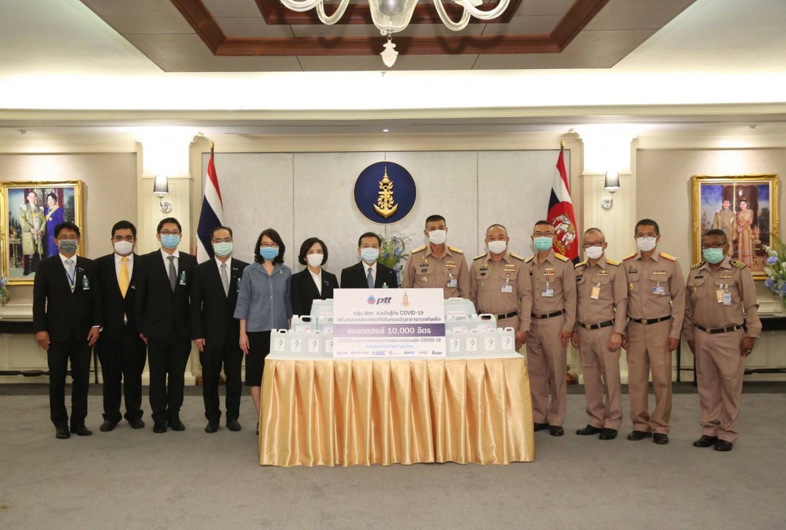 นายกฤษณ์ อิ่มแสง รองกรรมการผู้จัดการใหญ่บริหารกลยุทธ์กลุ่มธุรกิจปิโตรเลียมขั้นปลาย บริษัท ปตท. จำกัด (มหาชน) ส่งมอบแอลกอฮอล์ความเข้มข้นสูงปริมาณ 10,000 ลิตร ให้แก่พลเรือเอก สิทธิพร มาศเกษม เสนาธิการทหารเรือ ณ กองบัญชาการกองทัพเรือ วังนันทอุทยาน โดยกรมวิทยาศาสตร์กองทัพเรือจะนำไปผลิตเป็นแอลกอฮอล์ 70% และจะนำไปกระจายให้กับหน่วยงานที่เกี่ยวข้องเพื่อใช้ ในการควบคุมการแพร่ระบาดของเชื้อไวรัส COVID-19 อาทิ ศูนย์กักกันโรคที่อ่าวดงตาล โรงพยาบาลอาภากรเกียรติวงศ์ ฐานทัพเรือสัตหีบ จังหวัดชลบุรี