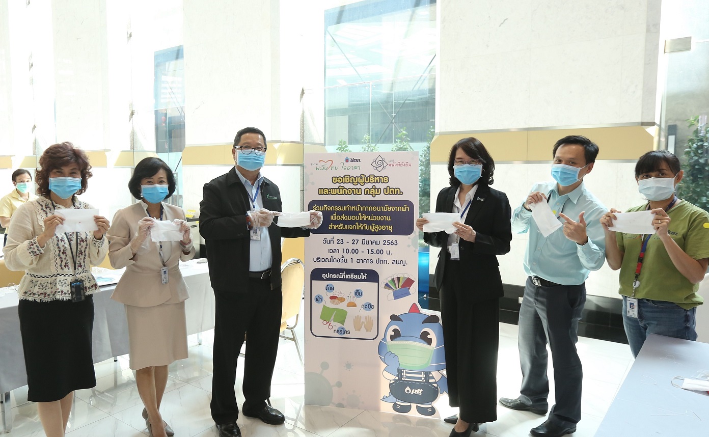 - ส่งมอบหน้ากากอนามัยจากผ้า จำนวน 10,000 ชิ้นดูแลผู้สูงอายุ ดำเนินการโดยชมรมพลังไทย ใจอาสา กลุ่ม ปตท. มูลนิธิพลังที่ยั่งยืน และชุมชนเครือข่าย เพื่อมอบให้แก่กระทรวงการพัฒนาสังคมและความมั่นคงของมนุษย์ นำไปกระจายแก่ศูนย์พัฒนาการจัดสวัสดิการสังคมผู้สูงอายุทั้ง 12 แห่งทั่วประเทศ เพื่อช่วยดูแลผู้สูงอายุซึ่งถือเป็นกลุ่มเสี่ยงต่อการติดเชื้อ