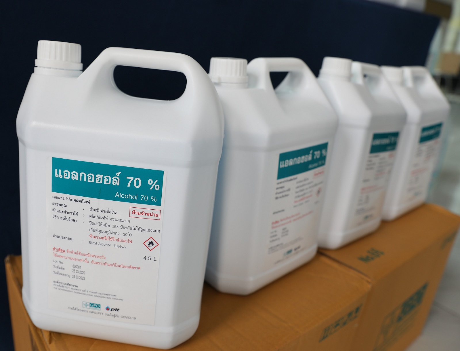- ปตท.จัดหาแอลกอฮอล์ทางการแพทย์ประมาณ 150,000 ลิตร ให้แก่หน่วยงานทางการแพทย์ หลังจากภาครัฐผ่อนผันมาตรการฯ ปตท. จึงสามารถจัดหาจากโรงผลิตแอลกอฮอล์ต้นทางได้ทันที โดยร่วมกับองค์การเภสัชกรรมปรับคุณภาพสำหรับใช้งานทางการแพทย์ และจัดหาเองส่วนหนึ่งส่งมอบให้โรงพยาบาลภายใต้กระทรวงสาธารณสุข และหน่วยงานภาครัฐ อาทิ วิทยาลัยแพทย์และกองทัพต่างๆ เพื่อกระจายให้แก่โรงพยาบาลและหน่วยงานในสังกัดทั่วประเทศต่อไป