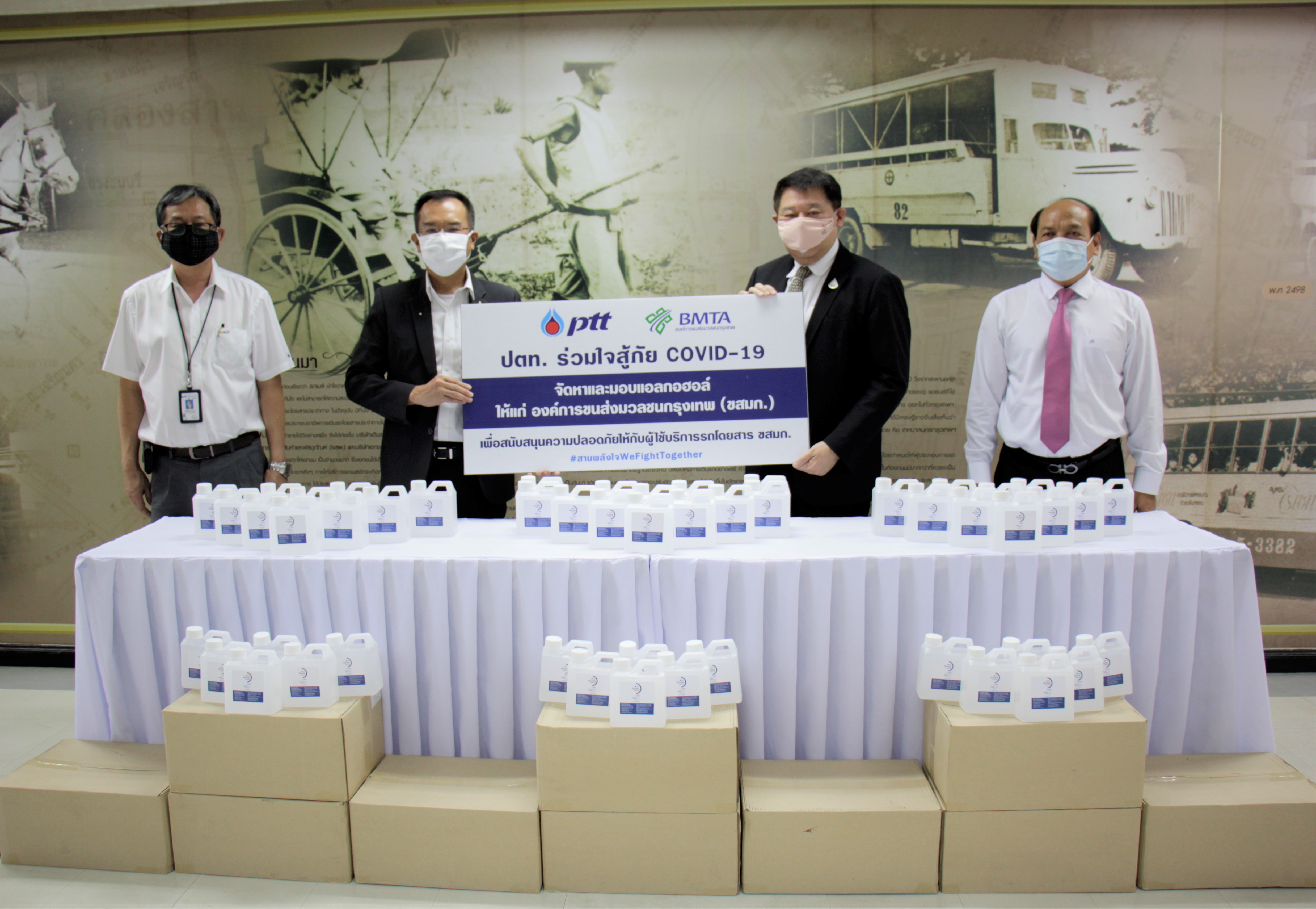 คุณวุฒิกร สติฐิต รองกรรมการผู้จัดการใหญ่หน่วยธุรกิจก๊าซธรรมชาติ บริษัท ปตท. จำกัด (มหาชน) (ปตท.) พร้อมด้วย คุณศักดิ์เฉลิม สิทธิวงศ์ ผู้ช่วยกรรมการผู้จัดการใหญ่ก๊าซธรรมชาติสำหรับยานยนต์ และคณะผู้บริหารสายงานก๊าซธรรมชาติสำหรับยานยนต์ ร่วมมอบเจลแอลกอฮอล์ที่จัดหาจากผู้ผลิตในประเทศให้กับองค์การขนส่งมวลชนกรุงเทพ (ขสมก.) เพื่อช่วยป้องกันและลดการแพร่กระจายเชื้อไวรัส COVID-19 ให้กับประชาชนผู้ใช้บริการรถโดยสารประจำทาง รวมถึง บุคคลากรของ ขสมก. โดยมีคุณสุระชัย เอี่ยมวชิรสกุล ผู้อำนวยการองค์การขนส่งมวลชนกรุงเทพ และคุณประยูร ช่วยแก้ว รองผู้อำนวยการฝ่ายการเดินรถองค์การ เป็นผู้รับมอบ เมื่อวันที่ 21 เมษายนที่ผ่านมา
