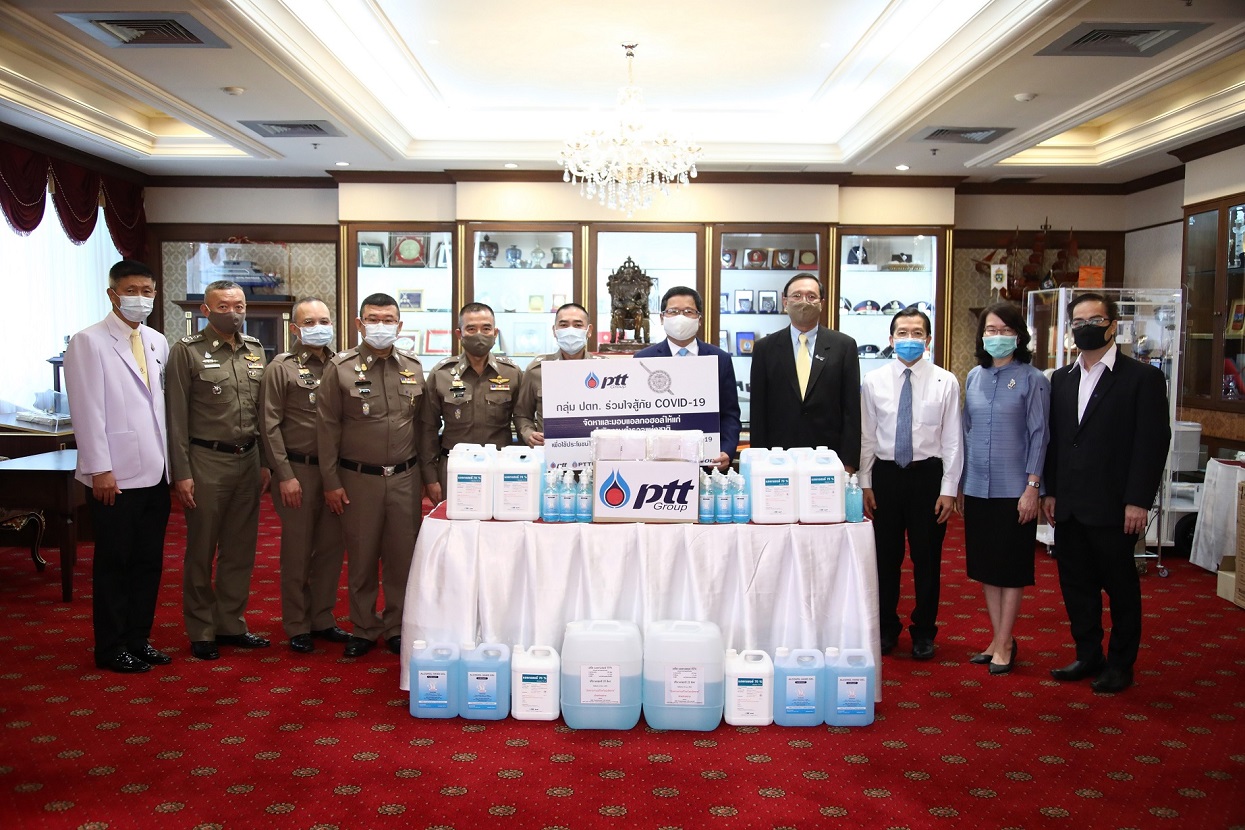 นายชาญศิลป์ ตรีนุชกร ประธานเจ้าหน้าที่บริหารและกรรมการผู้จัดการใหญ่ บริษัท ปตท. จำกัด (มหาชน) และคณะผู้บริหาร มอบแอลกอฮอล์ ให้แก่เจ้าหน้าที่สำนักงานตำรวจแห่งชาติ และหน่วยงานในสังกัด ได้แก่ สำนักงานคณะกรรมการข้าราชการตำรวจ และโรงพยาบาลตำรวจ โดยพล.ต.อ. จักรทิพย์ ชัยจินดา ผู้บัญชาการตำรวจแห่งชาติ เป็นผู้รับมอบ ทั้งนี้ ยังได้มอบหน้ากากอนามัยผ้า จำนวน 1,500 ชิ้น เพิ่มเติม ให้แก่โรงพยาบาลตำรวจ เพื่อใช้ในการภารกิจควบคุมการแพร่ระบาดเชื้อ COVID-19กลุ่ม ปตท. พร้อมเป็นกำลังใจให้ผ่านวิกฤตครั้งนี้ไปด้วยกัน #สานพลังใจWeFightTogether
