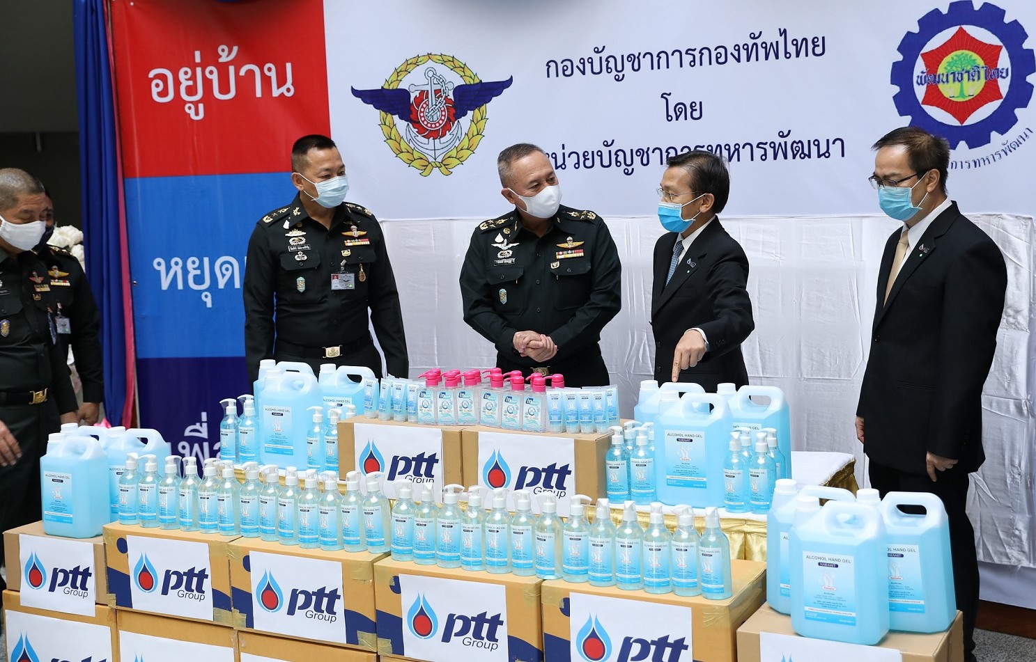 นายกฤษณ์ อิ่มแสง รองกรรมการผู้จัดการใหญ่บริหารกลยุทธ์กลุ่มธุรกิจปิโตรเลียมขั้นปลาย บริษัท ปตท. จำกัด (มหาชน) และคณะผู้บริหาร มอบเจลแอลกอฮอล์ ซึ่งจัดหาจากผู้ผลิต เนื่องจาก ปตท. ไม่มีโรงงานผลิตแอลกอฮอล์เป็นของตนเอง ให้แก่หน่วยบัญชาการทหารพัฒนา กองบัญชาการกองทัพไทย โดย พลเอก พีรพงษ์ เมืองบุญชู ผู้บัญชาการหน่วยบัญชาการทหารพัฒนา เป็นผู้รับมอบ เพื่อนำไปกระจายให้แก่เจ้าหน้าที่ปฏิบัติงานและประชาชนทั่วทุกภูมิภาคของประเทศ ร่วมบรรเทาความเดือดร้อนจากสถานการณ์การแพร่ระบาดของเชื้อไวรัสโควิด 19 กลุ่ม ปตท. พร้อมเป็นกำลังใจให้ผ่านวิกฤตครั้งนี้ไปด้วยกัน #สานพลังใจWeFightTogether