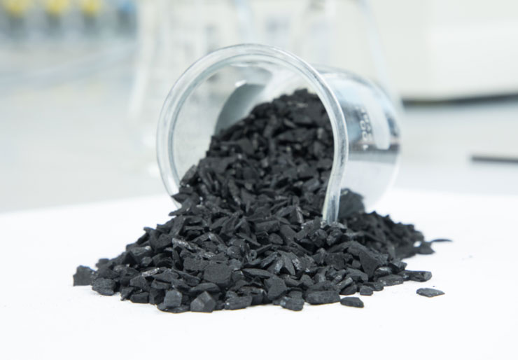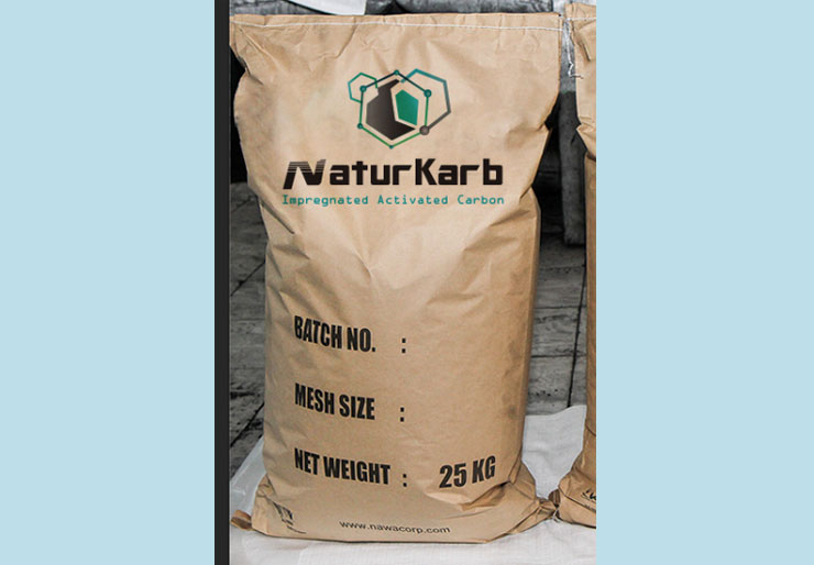 ถ่านกัมมันต์เคลือบสารเคมี (Impregnated activated carbon) สำหรับใช้ในการบำบัดอากาศปนเปื้อนสารอนินทรีย์ที่ก่อให้เกิดกลิ่นจำพวกไฮโดรเจนซัลไฟด์ (H2S) หรือก๊าซไข่เน่าที่เกิดจากกระบวนการผลิตหรือระบบบำบัดน้ำเสียจากอุตสาหกรรม เช่น โรงงานปิโตรเลียมและปิโตรเคมี โรงงานแปรรูปอาหาร เป็นต้น นอกจากนี้ ยังสามารถใช้ในการบำบัดอากาศปนเปื้อนก๊าซไฮโดรเจนซัลไฟด์ร่วมกับสารพิษจำพวกสารอินทรีย์ระเหยง่าย (VOCs) ได้อีกด้วย โดย Impregnated Activated Carbon มีลักษณะเป็นเม็ด Granule ผลิตจากกะลามะพร้าว ซึ่งมีข้อดีคือ ประสิทธิภาพในการบำบัดก๊าซไฮโดรเจนซัลไฟด์มากกว่า 99% และสามารถนำกลับมาใช้ใหม่ได้โดยผ่านกระบวนการ Regeneration
